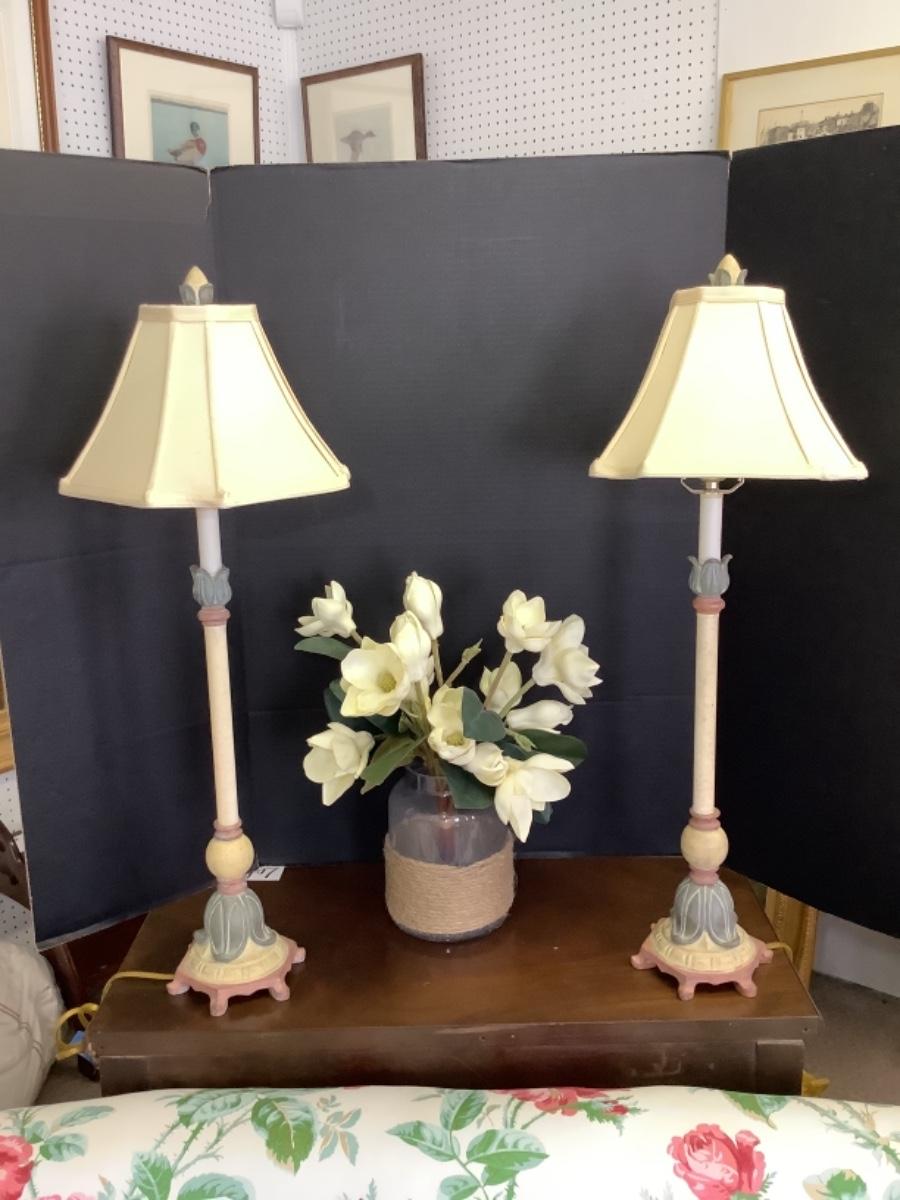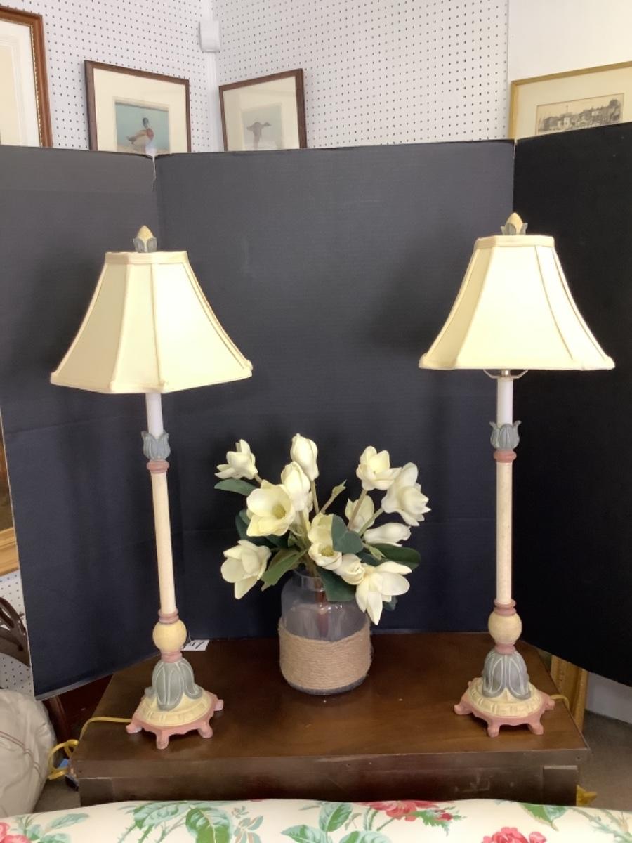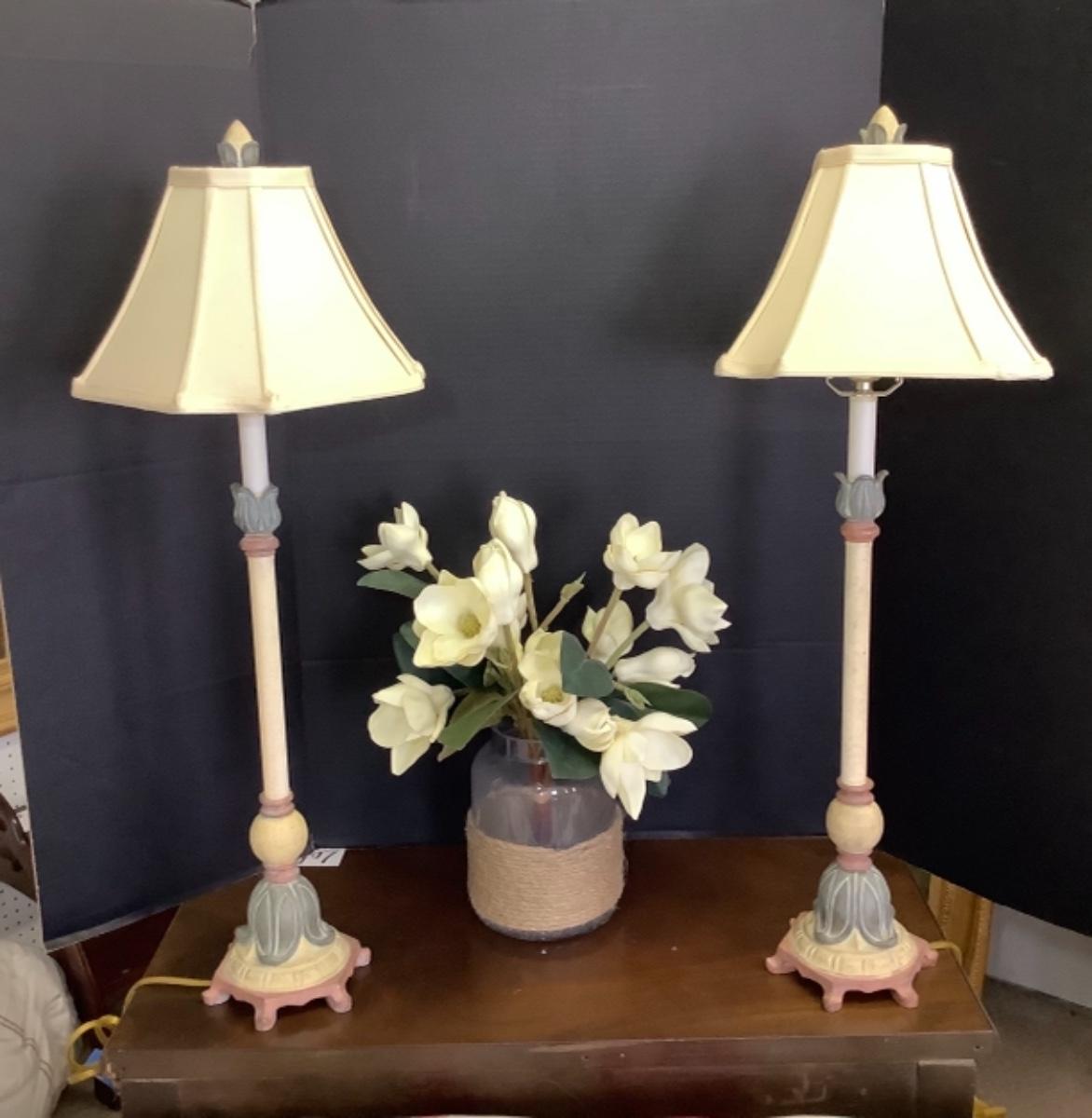 231  Pair of Candlestick Lamps &  Bouquet of Magnolias