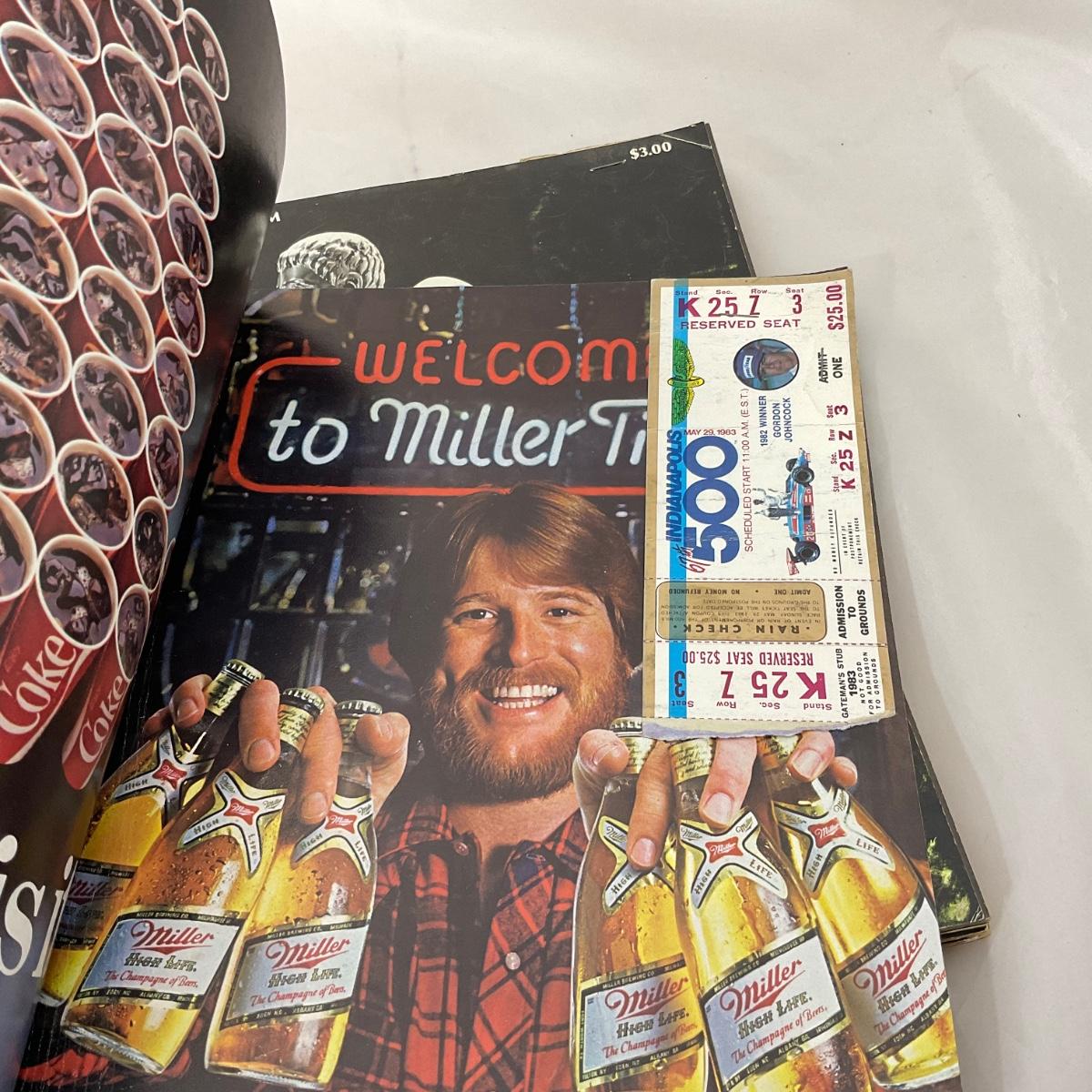 Indy 500 Run of Programs with original tickets stapled inside the back of the program. Please see photos for details and condition. ::: Shipping is available on this lot. If you require shipping you must let us know at the close of the auction. We will coordinate with you after the item has been won. Shipping fees will include insurance up to or exceeding the value of all items being mailed. If you have any questions regarding this lot please contact the auctioneer either via this website, by direct email or by phone. PICK UP TIMES and other important information can be found in the TERMS and DESCRIPTION of the auction. Please take a look for pertinent information. Thanks!