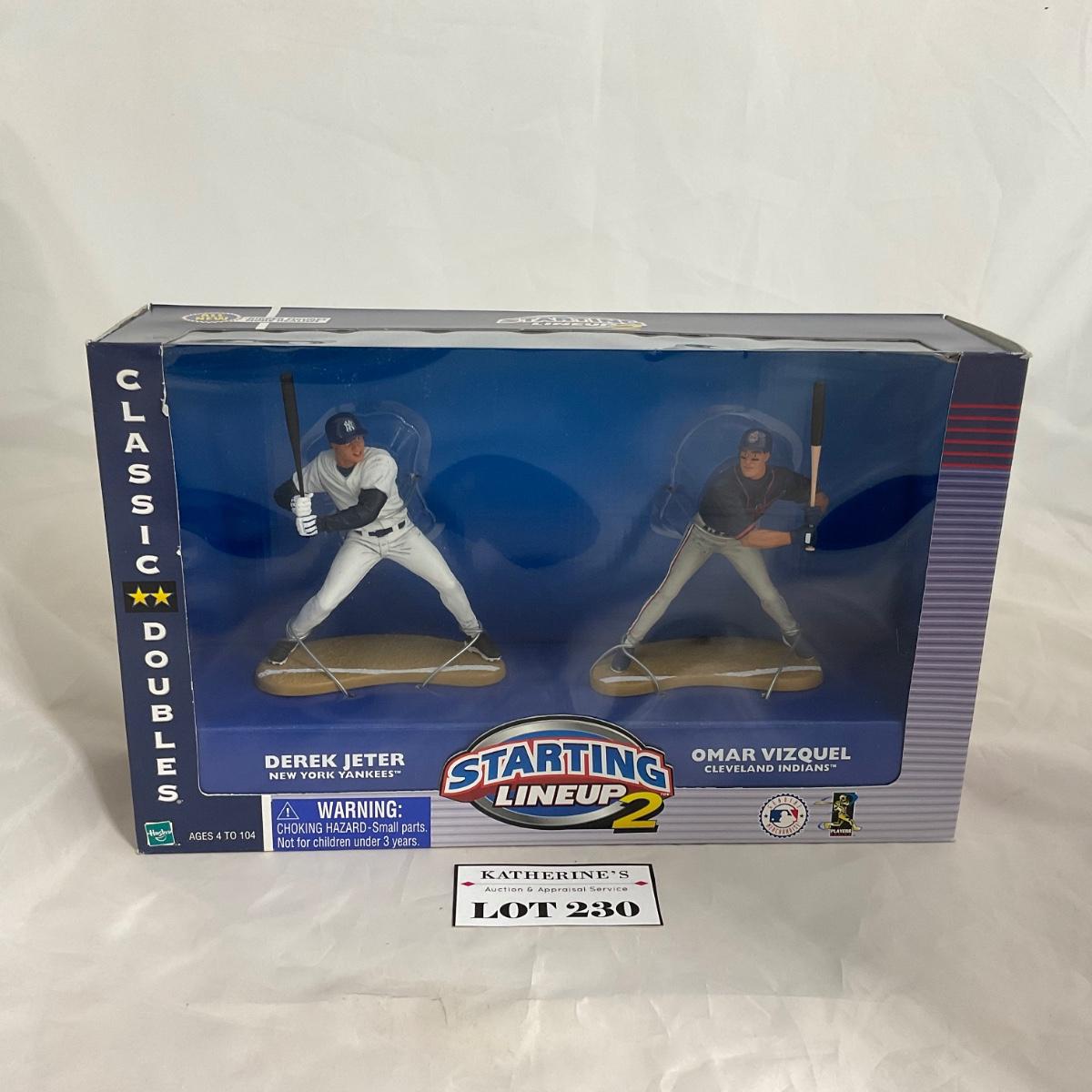 One Starting Lineup 2 Figure Derek Jeter & Omar Vizquel. Please see photos for details and condition. ::: Shipping is available on this lot. If you require shipping you must let us know at the close of the auction. We will coordinate with you after the item has been won. Shipping fees will include insurance up to or exceeding the value of all items being mailed. If you have any questions regarding this lot please contact the auctioneer either via this website, by direct email or by phone. PICK UP TIMES and other important information can be found in the TERMS and DESCRIPTION of the auction. Please take a look for pertinent information. Thanks!