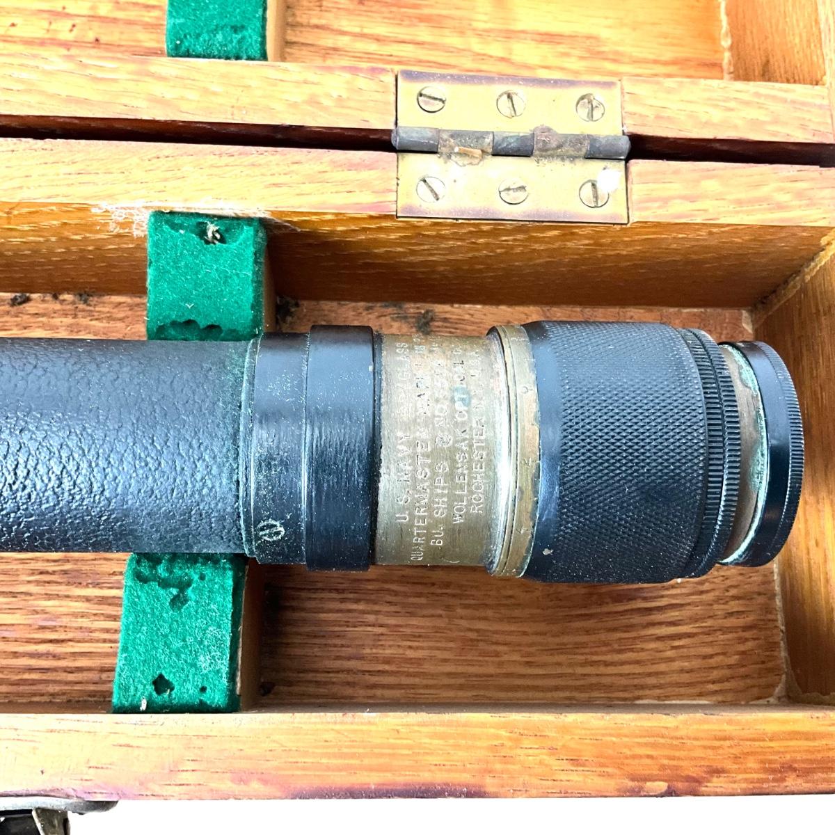 16 power Quartermaster Spyglass MK 1 Wollensak Optical Co. Original wooden case-USA 1942.