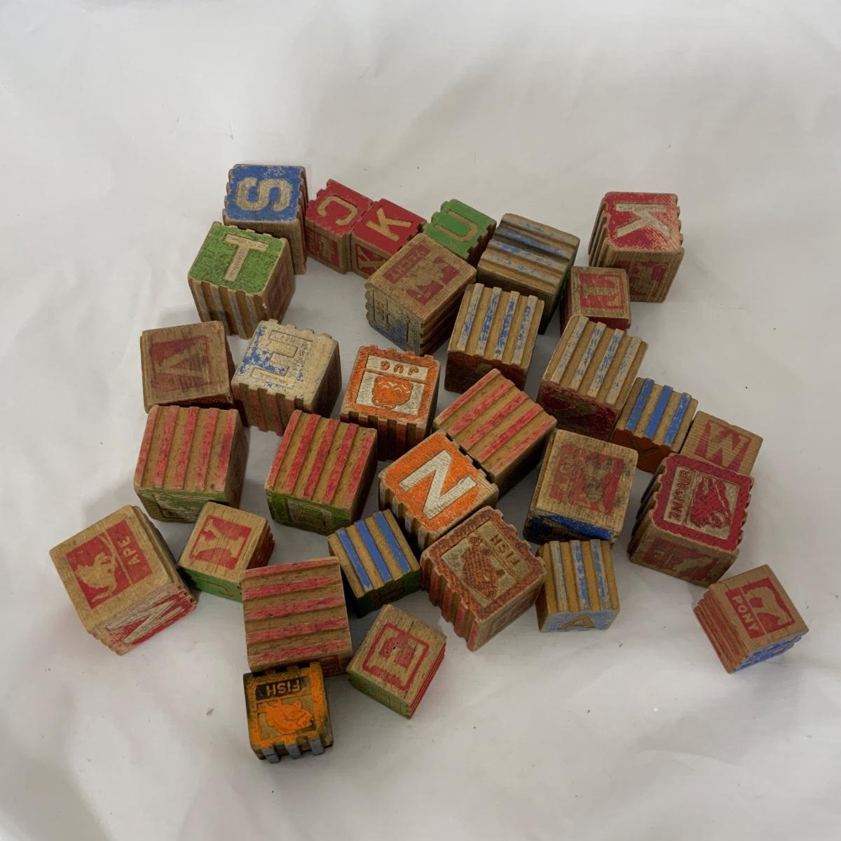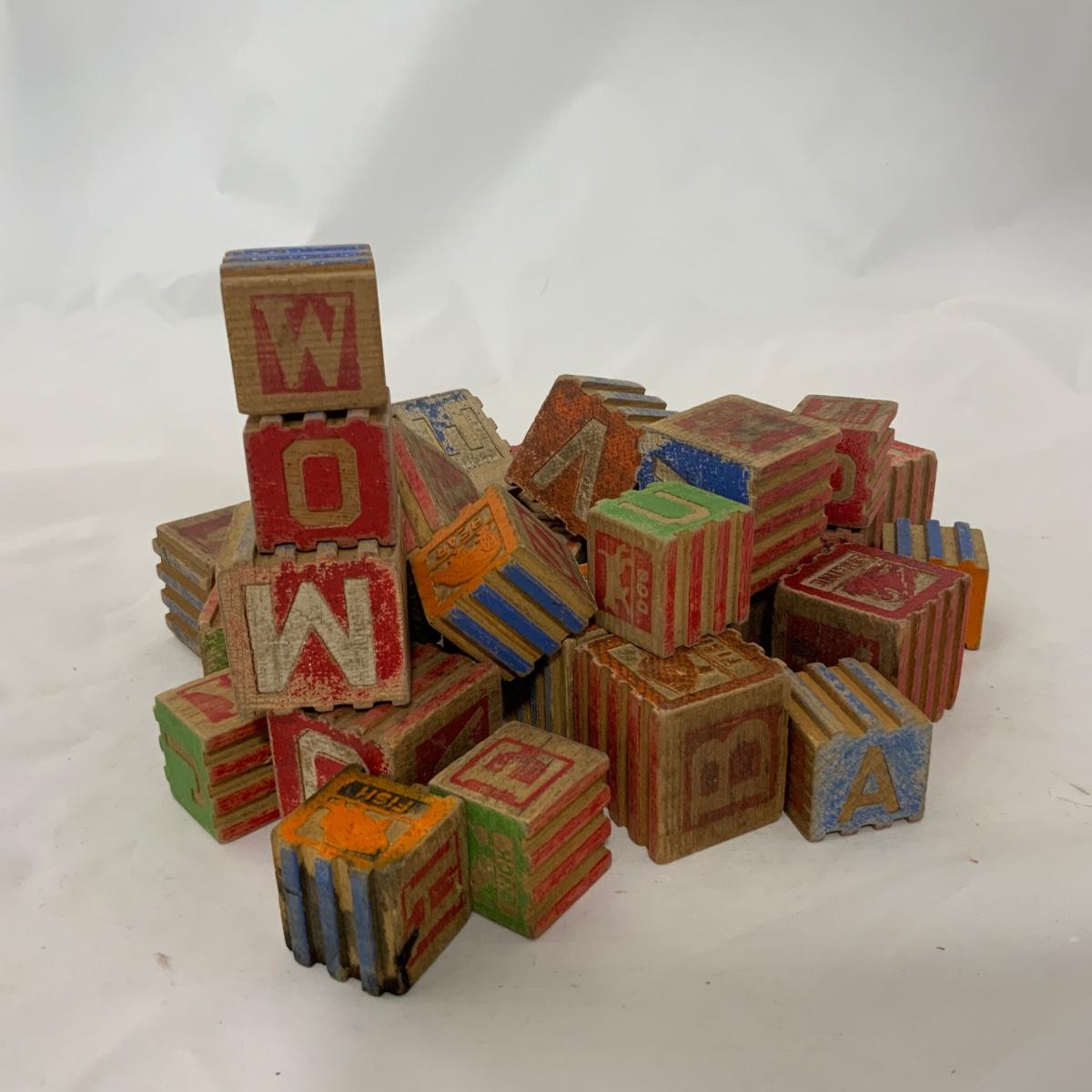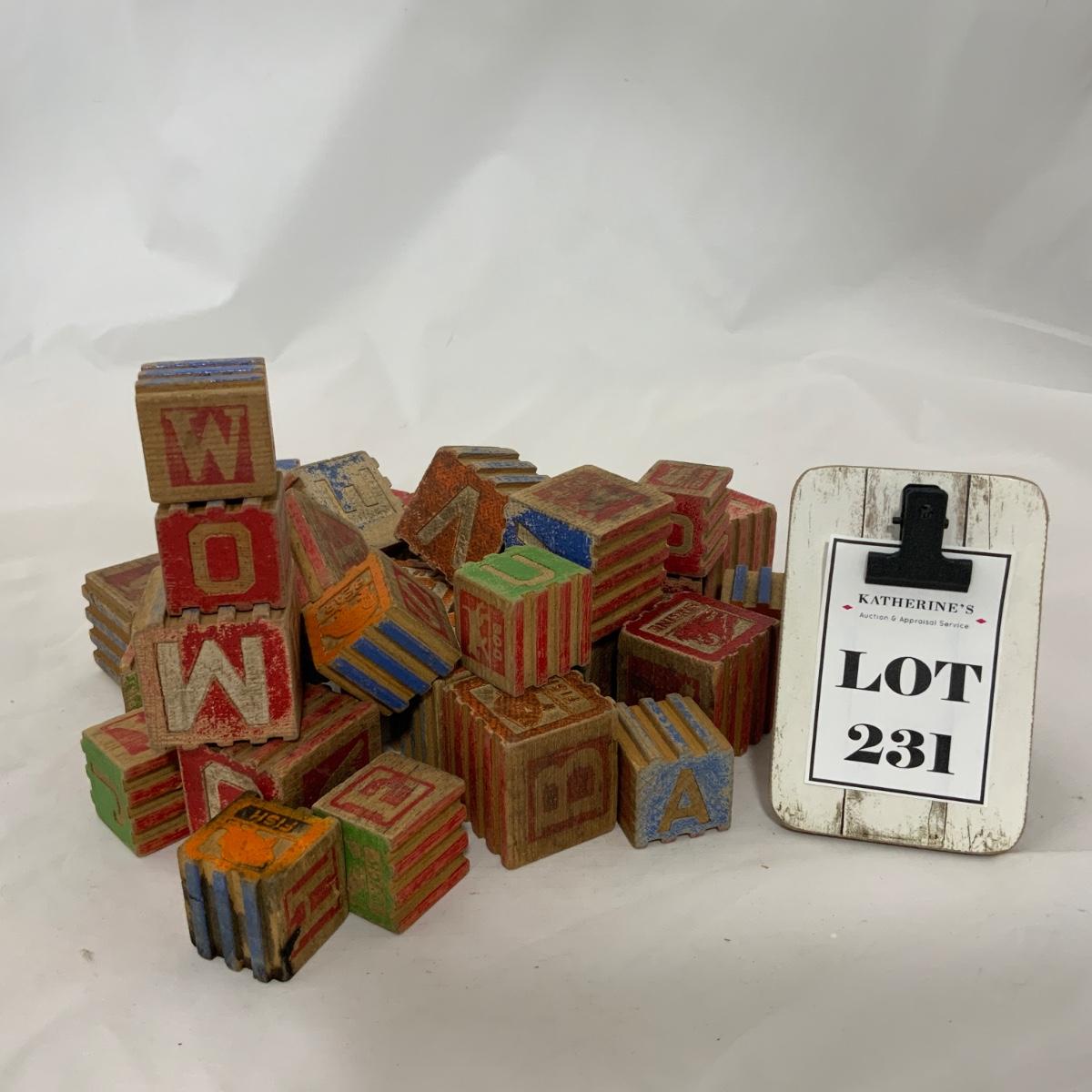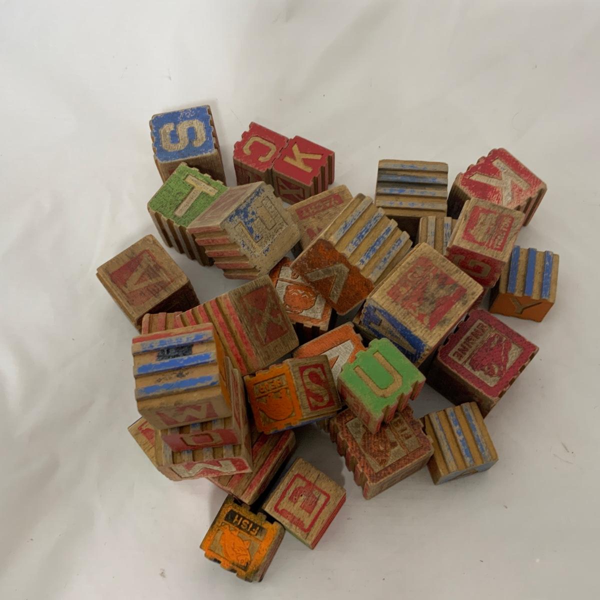 Thirty One Wood Blocks. Two Sizes. Multiple Letters. Please see photos for details and condition. ::: Shipping is NOT available on this lot. If you have any questions regarding this lot please contact the auctioneer either via this website, by direct email or by phone. PICK UP TIMES and other important information can be found in the TERMS and DESCRIPTION of the auction. Please take a look for pertinent information. Thanks!