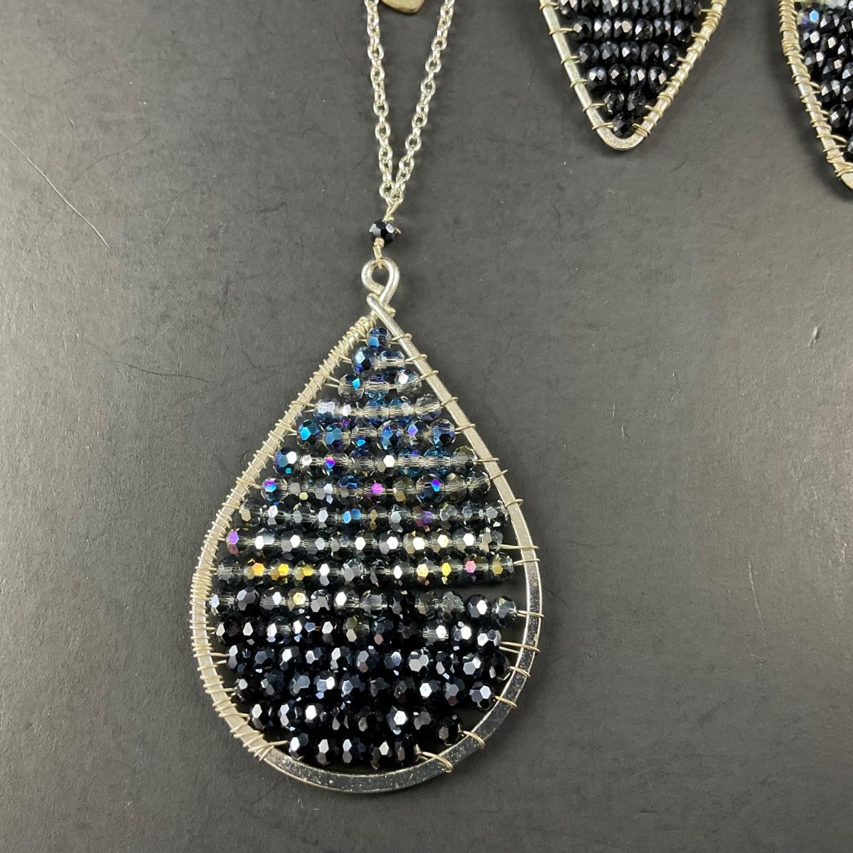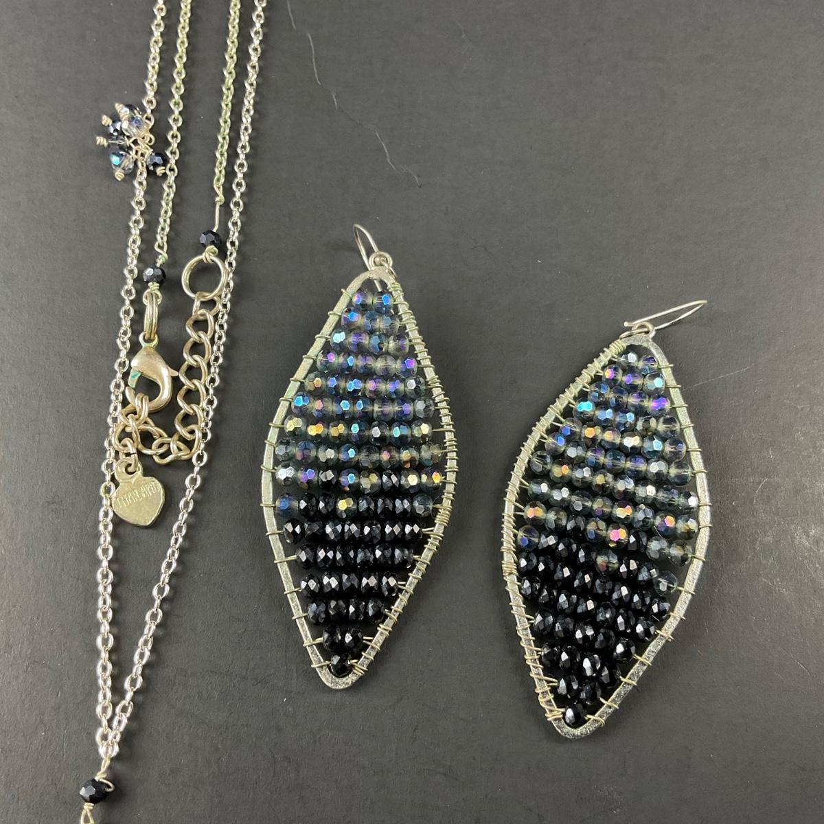 -231- COSTUME JEWELRY | Blue Beaded Necklace and Earrings Set | Marked