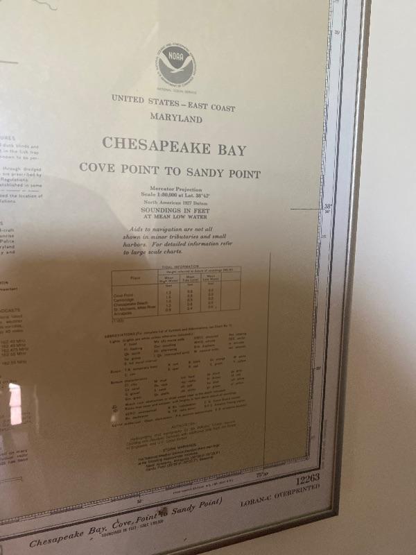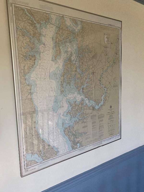 Framed Map of Chesapeake Cove Poont to Sandy Point measuring 36 inches wide by 41 inches tall