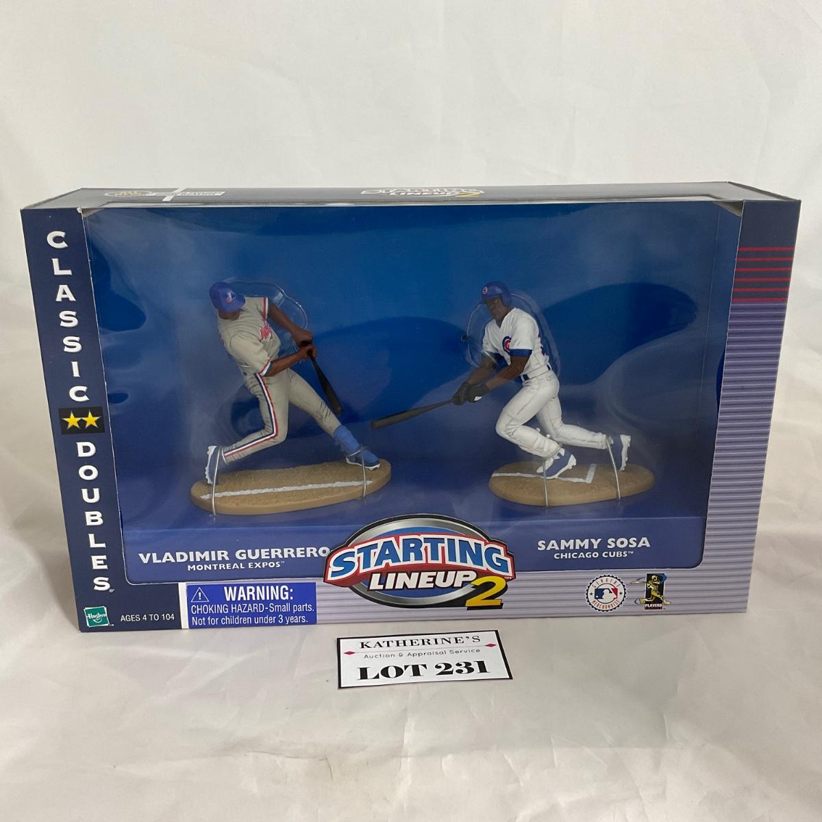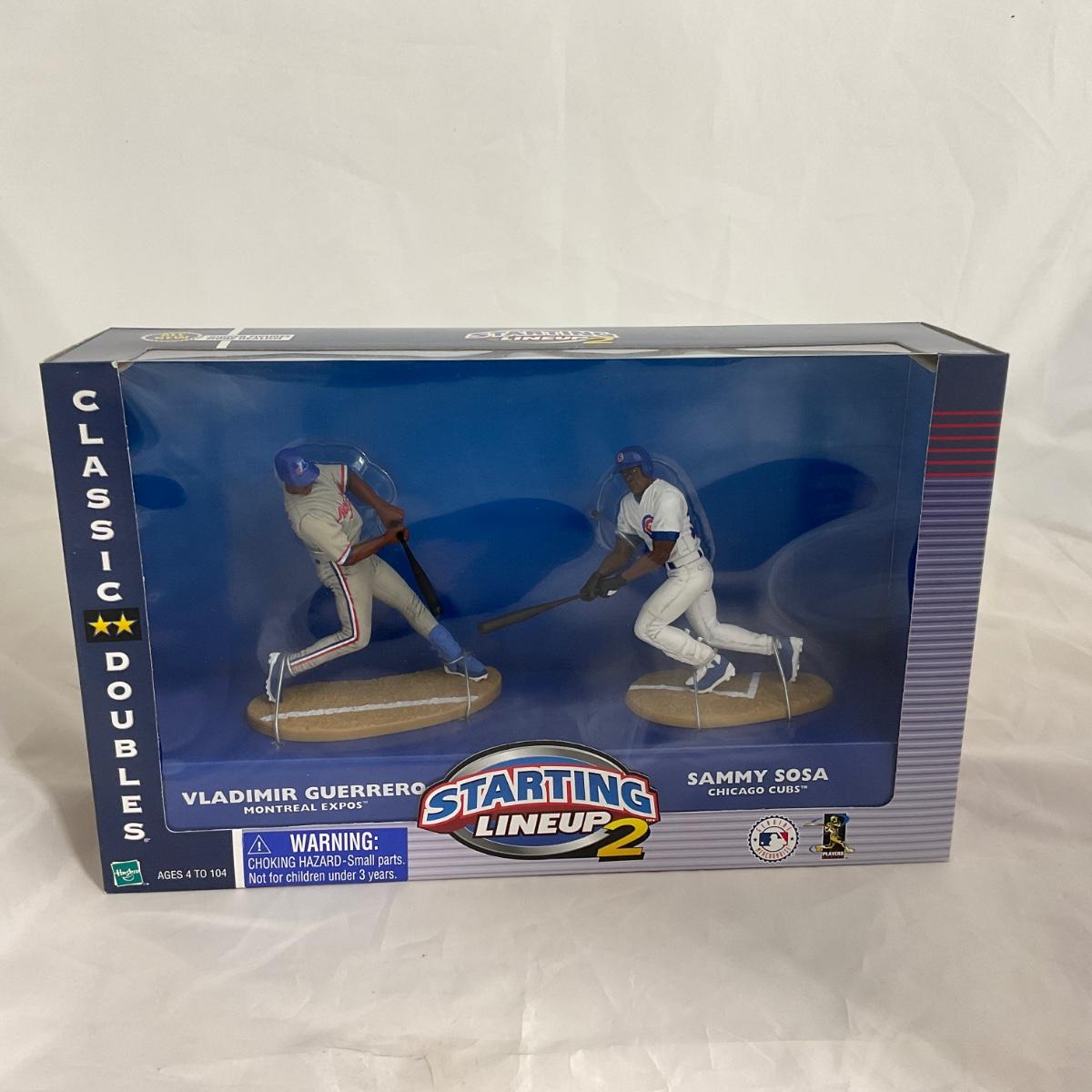 One Starting Lineup 2 Figure Vladimir Guerrero & Sammy Sosa. Please see photos for details and condition. ::: Shipping is available on this lot. If you require shipping you must let us know at the close of the auction. We will coordinate with you after the item has been won. Shipping fees will include insurance up to or exceeding the value of all items being mailed. If you have any questions regarding this lot please contact the auctioneer either via this website, by direct email or by phone. PICK UP TIMES and other important information can be found in the TERMS and DESCRIPTION of the auction. Please take a look for pertinent information. Thanks!