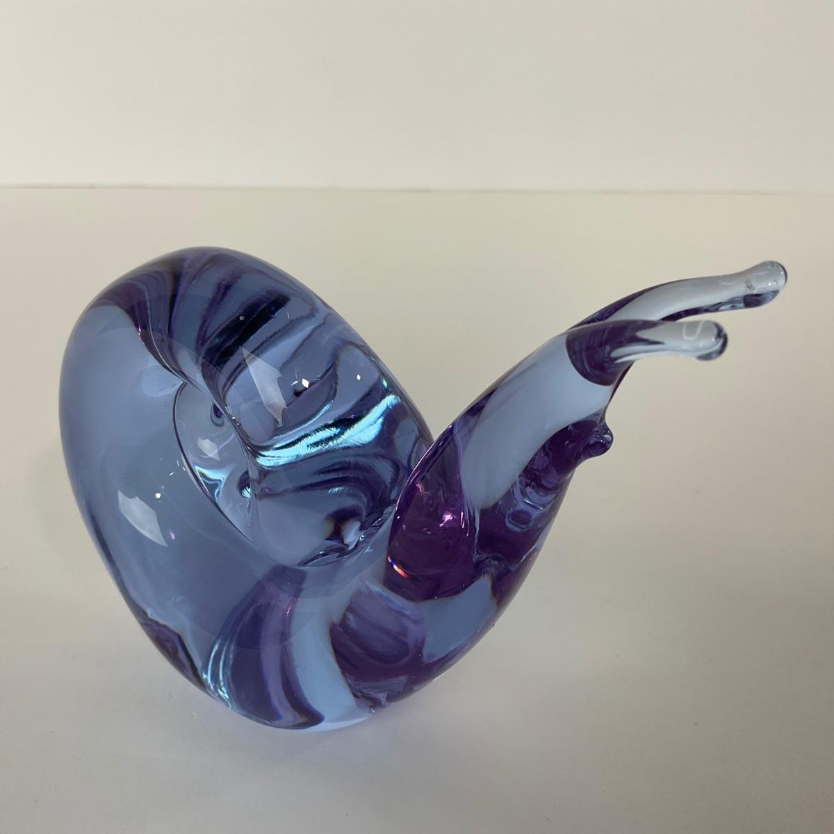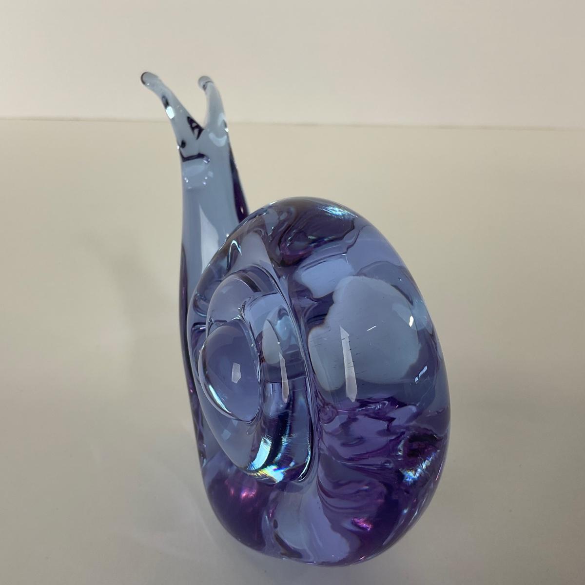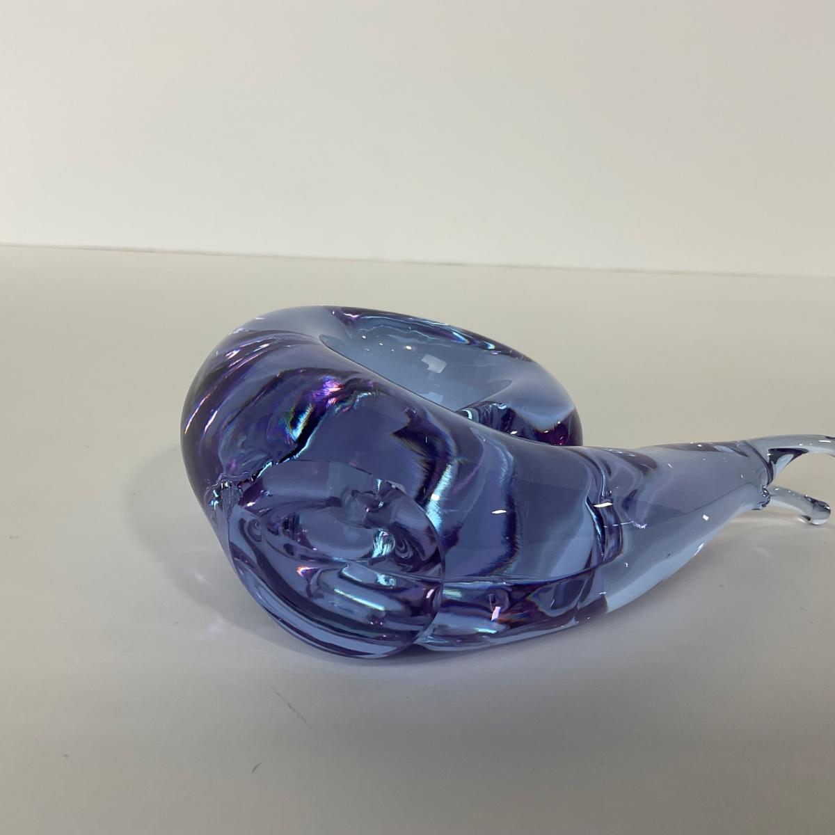 One unmarked light purple art glass snail. This piece has no damage, and appears to be in great shape with no visable chips, cracks, or broken pieces. 5 inches wide by 4 inches tall. Please see photos for details and condition. Any condition statement is given as a courtesy to a client, is an opinion, and should not be treated as a statement of fact. Reference to condition written, oral or within a condition report shall not be regarded as a full account of condition and may not include all defects, alterations, or restorations. Absence of a condition report does not imply a lot is flawless or lacking imperfections or damage. Katherine’s Auction & Appraisal Service shall have no responsibility for any error or omission. Returns shall not be accepted on the basis of condition. ::: Shipping is available on this lot. If you require shipping you must let us know at the close of the auction. We will coordinate with you after the item has been won. Shipping fees will include insurance up to or exceeding the value of all items being mailed. If you have any questions regarding this lot please contact the auctioneer either via this website, by direct email or by phone. PICK UP TIMES and other important information can be found in the TERMS and DESCRIPTION of the auction. Please take a look for pertinent information. Thanks!