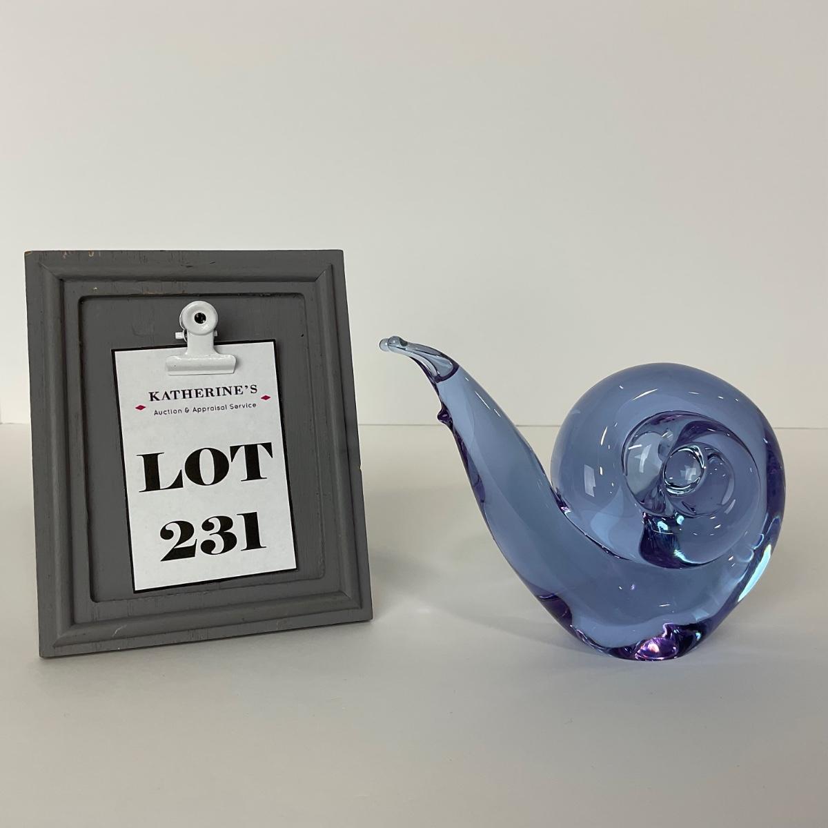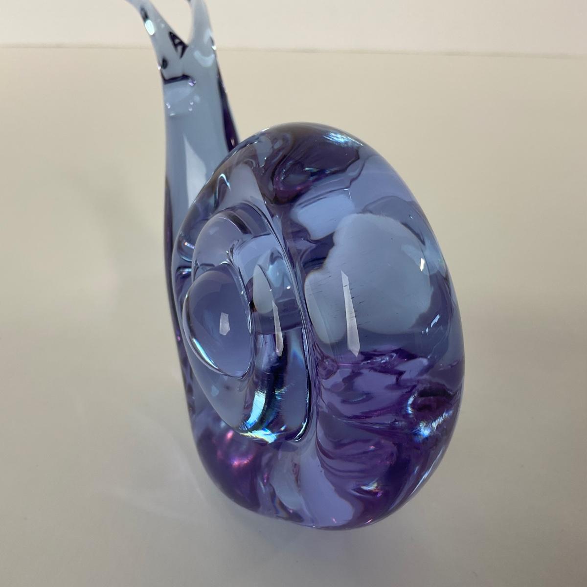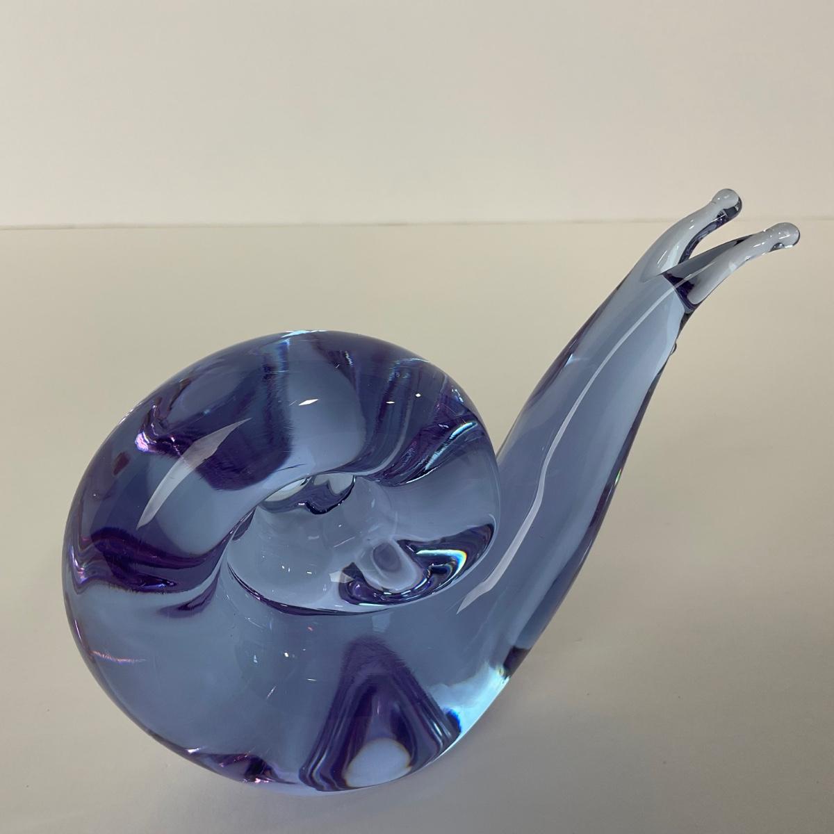 One unmarked light purple art glass snail. This piece has no damage, and appears to be in great shape with no visable chips, cracks, or broken pieces. 5 inches wide by 4 inches tall. Please see photos for details and condition. Any condition statement is given as a courtesy to a client, is an opinion, and should not be treated as a statement of fact. Reference to condition written, oral or within a condition report shall not be regarded as a full account of condition and may not include all defects, alterations, or restorations. Absence of a condition report does not imply a lot is flawless or lacking imperfections or damage. Katherine’s Auction & Appraisal Service shall have no responsibility for any error or omission. Returns shall not be accepted on the basis of condition. ::: Shipping is available on this lot. If you require shipping you must let us know at the close of the auction. We will coordinate with you after the item has been won. Shipping fees will include insurance up to or exceeding the value of all items being mailed. If you have any questions regarding this lot please contact the auctioneer either via this website, by direct email or by phone. PICK UP TIMES and other important information can be found in the TERMS and DESCRIPTION of the auction. Please take a look for pertinent information. Thanks!