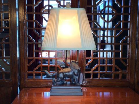 The measurements of this nice lamp are 16" across x 12" deep x 29" tall.