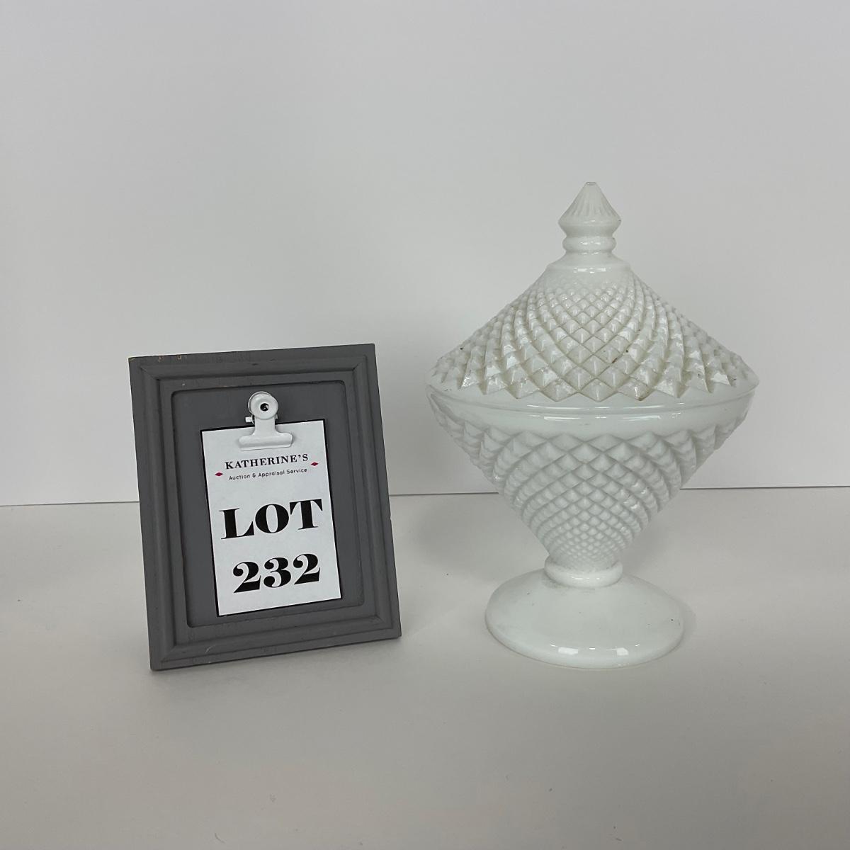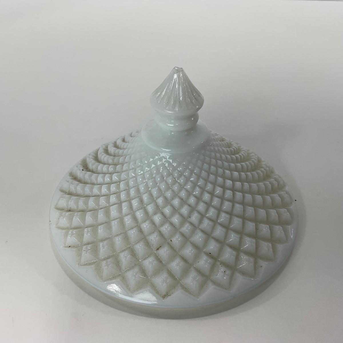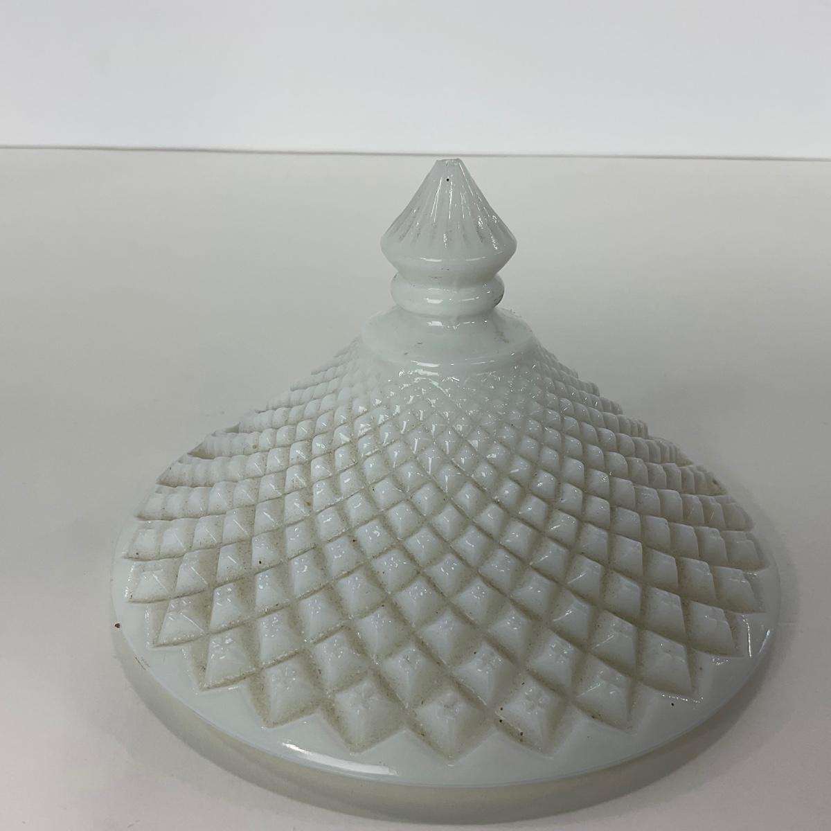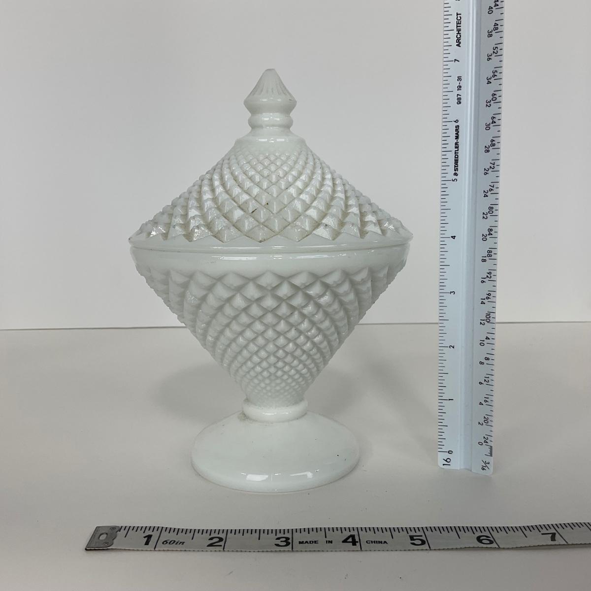 One Westmoreland Milk Glass lidded compote. Please see photos for details and condition. ::: Shipping is available on this lot. If you require shipping you must let us know at the close of the auction. We will coordinate with you after the item has been won. Shipping fees will include insurance up to or exceeding the value of all items being mailed. If you have any questions regarding this lot please contact the auctioneer either via this website, by direct email or by phone. PICK UP TIMES and other important information can be found in the TERMS and DESCRIPTION of the auction. Please take a look for pertinent information. Thanks!