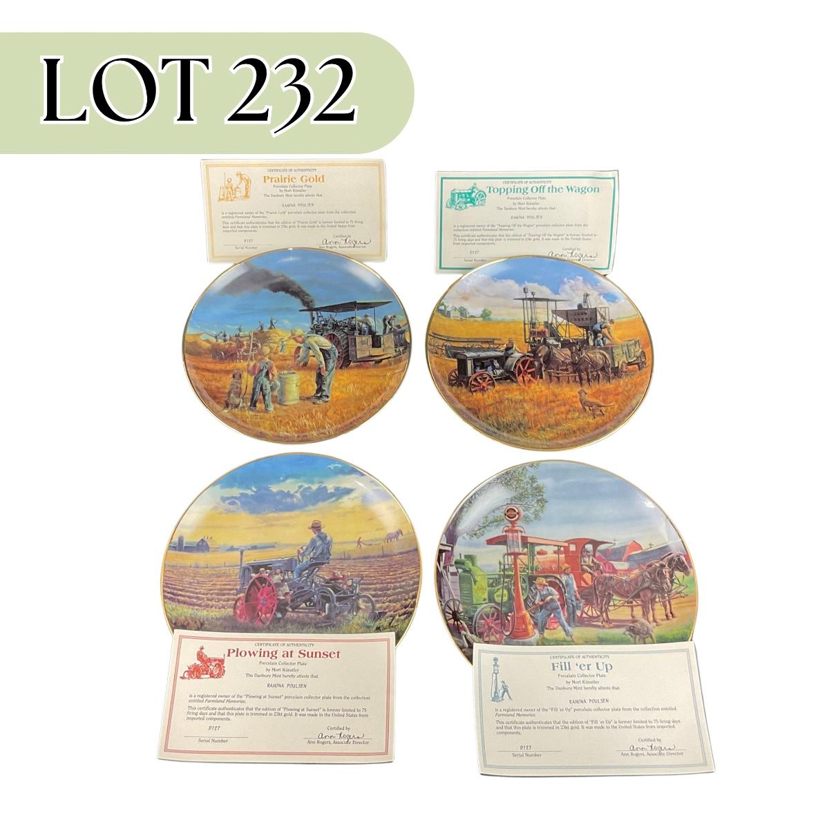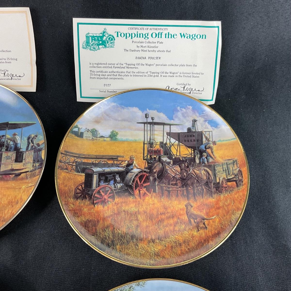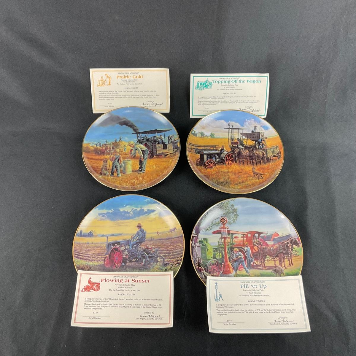 Four John Deere collector plates with Certificate of Authenticity included. Please see photos for details and condition. Any condition statement is given as a courtesy to a client, is an opinion, and should not be treated as a statement of fact. Reference to condition written, oral or within a condition report shall not be regarded as a full account of condition and may not include all defects, alterations, or restorations. Absence of a condition report does not imply a lot is flawless or lacking imperfections or damage. Katherine’s Auction & Appraisal Service shall have no responsibility for any error or omission. Returns shall not be accepted on the basis of condition. ::: Shipping is available on this lot. If you require shipping you must let us know at the close of the auction. We will coordinate with you after the item has been won. Shipping fees will include insurance up to or exceeding the value of all items being mailed. If you have any questions regarding this lot please contact the auctioneer either via this website, by direct email or by phone. PICK UP TIMES and other important information can be found in the TERMS and DESCRIPTION of the auction. Please take a look for pertinent information. Thanks!