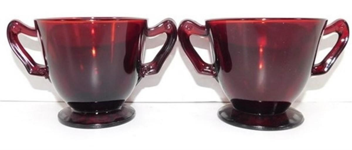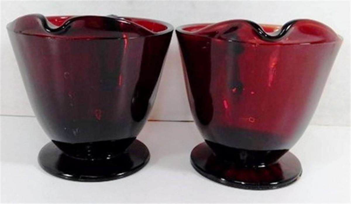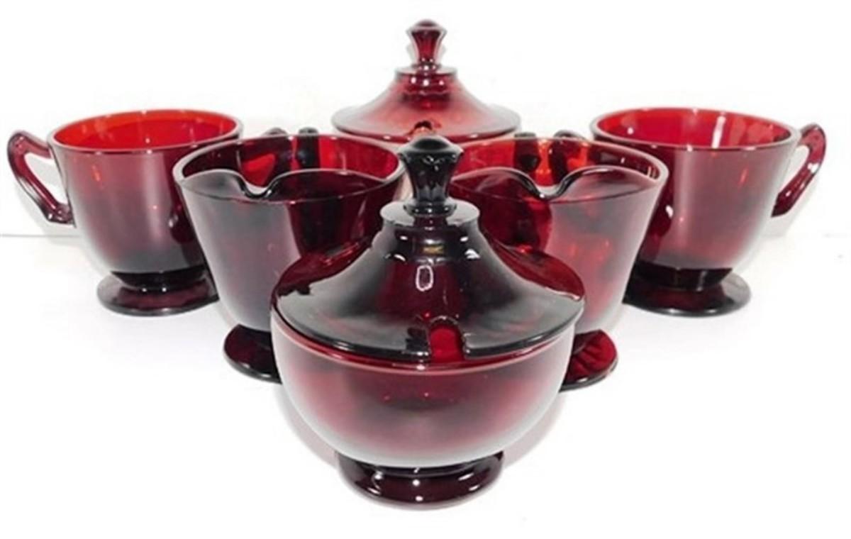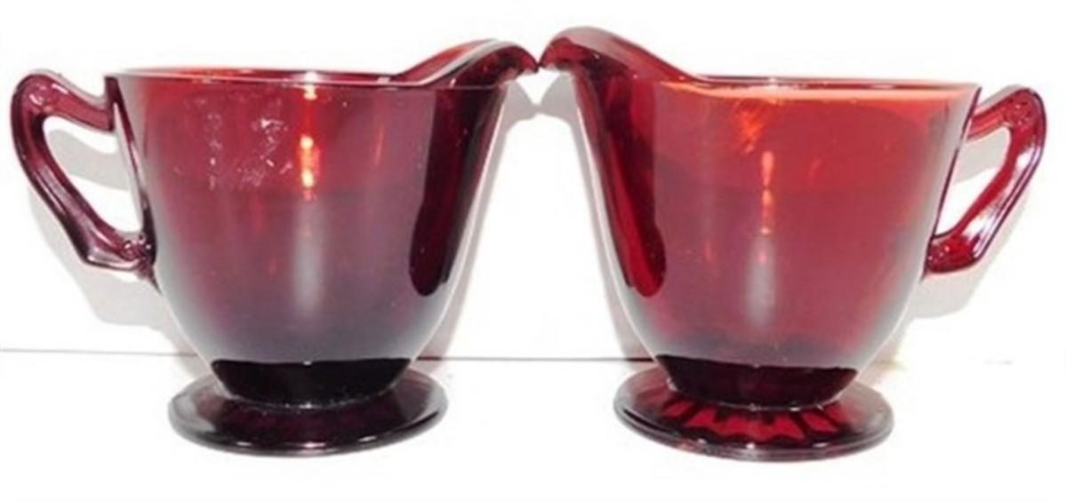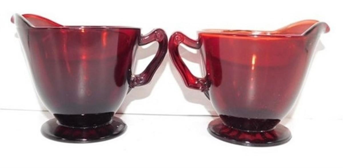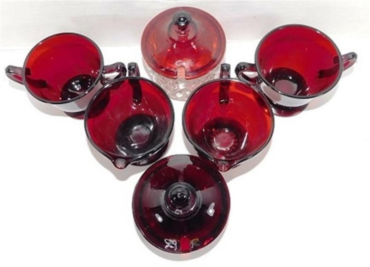 232 Lot of 8 including Lids - Ruby Red Anchor Hocking Cream and Sugar Lot 4-5 inches