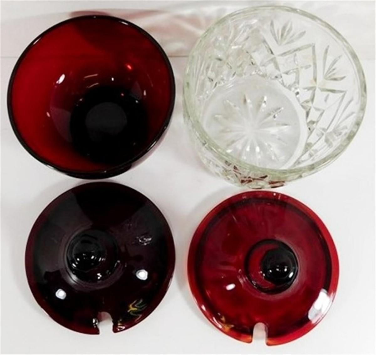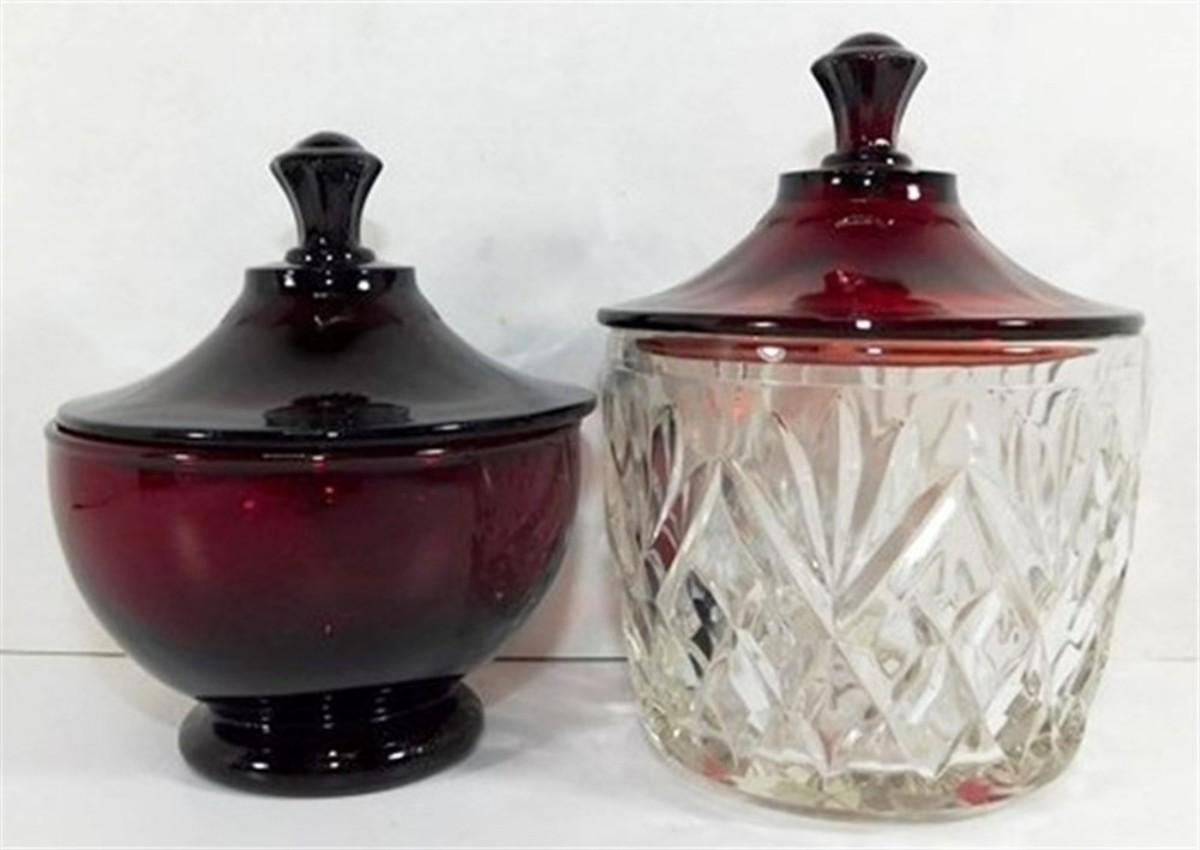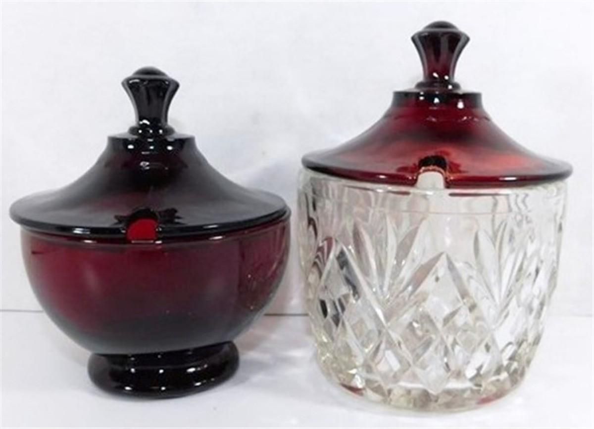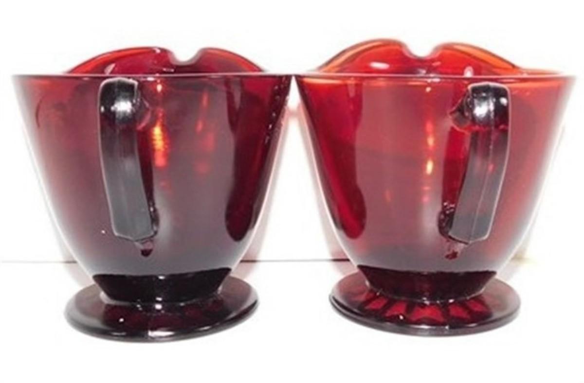 232 Lot of 8 including Lids - Ruby Red Anchor Hocking Cream and Sugar Lot 4-5 inches