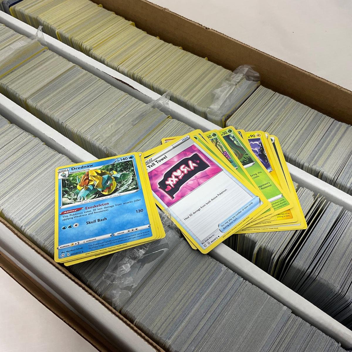 Very Large Bulk Box of Pokémon Cards. 10.5 inches by 19 inches. Please see photos for details and condition. ::: Shipping is available on this lot. If you require shipping you must let us know at the close of the auction. We will coordinate with you after the item has been won. Shipping fees will include insurance up to or exceeding the value of all items being mailed. If you have any questions regarding this lot please contact the auctioneer either via this website, by direct email or by phone. PICK UP TIMES and other important information can be found in the TERMS and DESCRIPTION of the auction. Please take a look for pertinent information. Thanks!