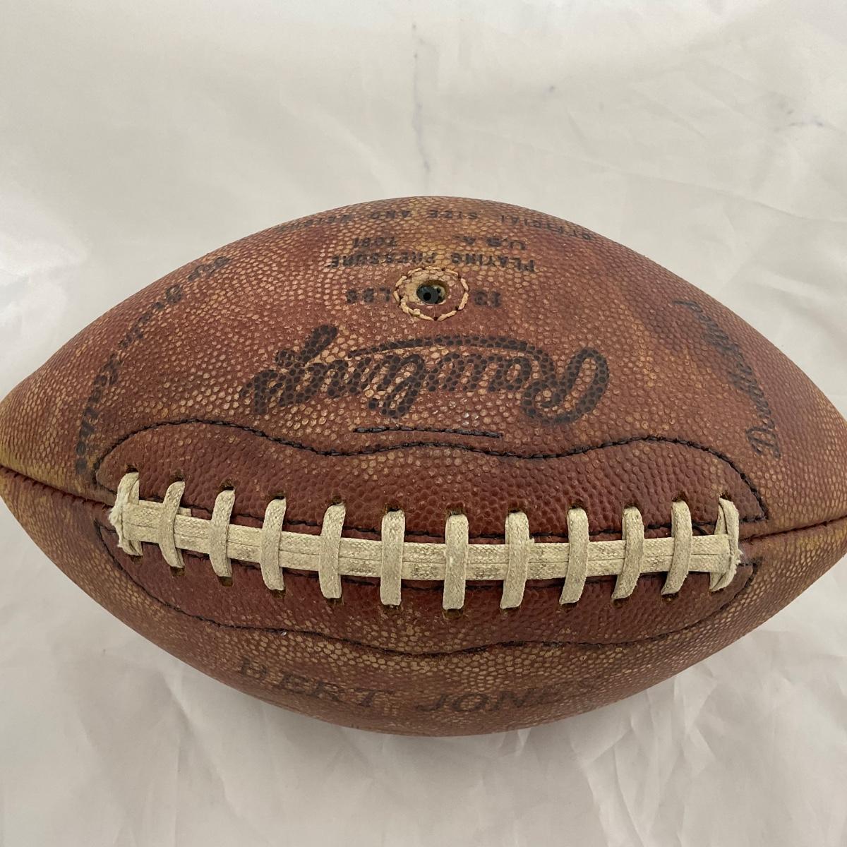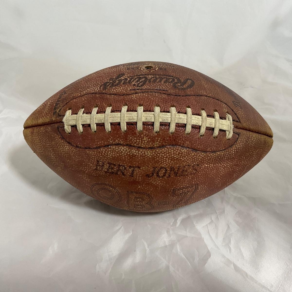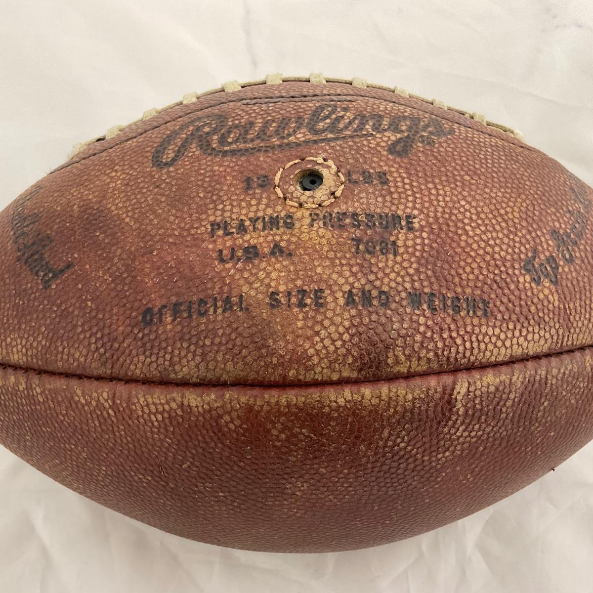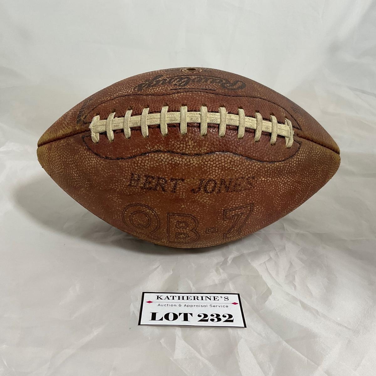 One 1970’s Rawlings Bert Jones Football. Baltimore Colts Quarterback. Please see photos for details and condition. ::: Shipping is available on this lot. If you require shipping you must let us know at the close of the auction. We will coordinate with you after the item has been won. Shipping fees will include insurance up to or exceeding the value of all items being mailed. If you have any questions regarding this lot please contact the auctioneer either via this website, by direct email or by phone. PICK UP TIMES and other important information can be found in the TERMS and DESCRIPTION of the auction. Please take a look for pertinent information. Thanks!