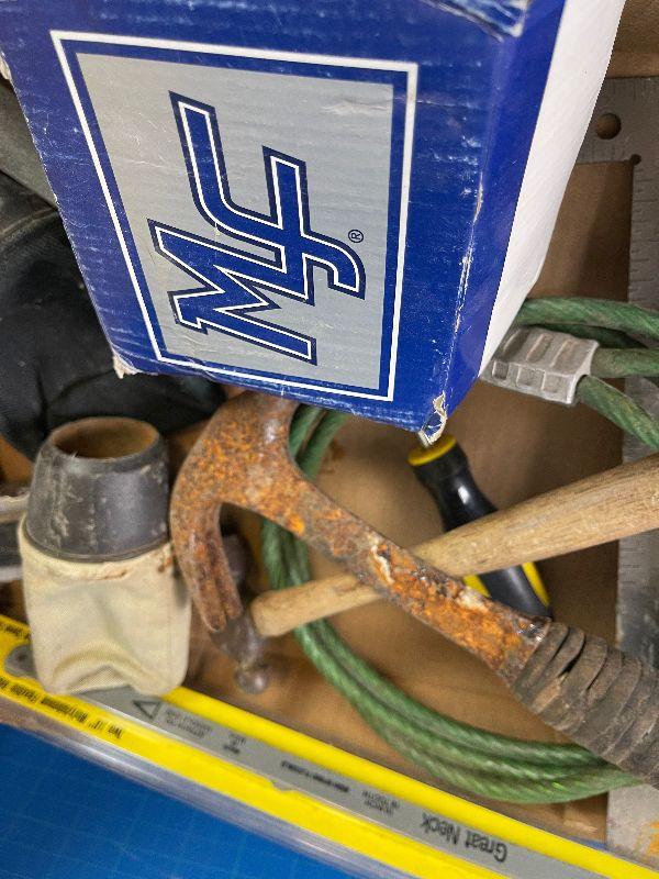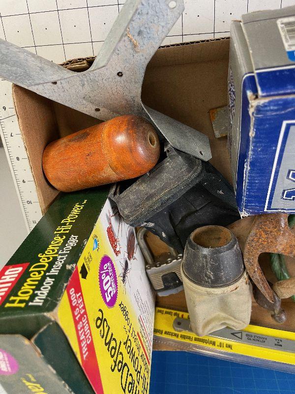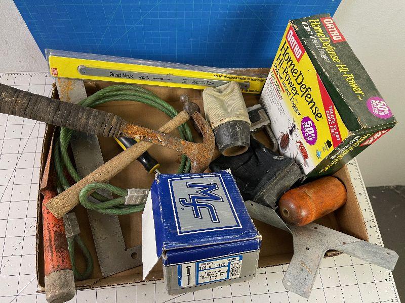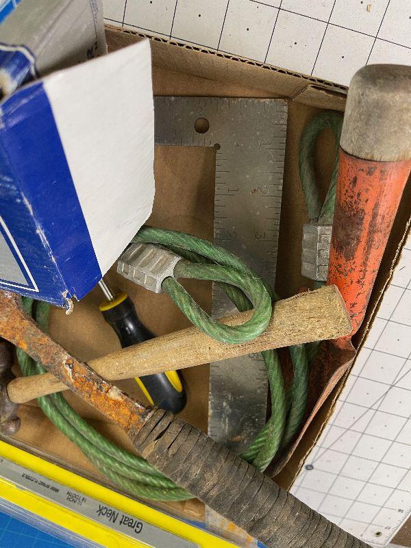 #232 Tray of Tools: T Square, hammer, screw Driver.