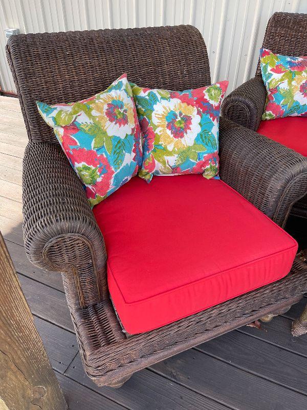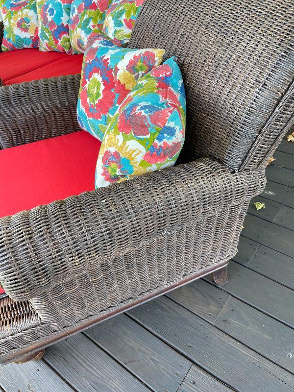 Real wicker, custom made seats and pillows.