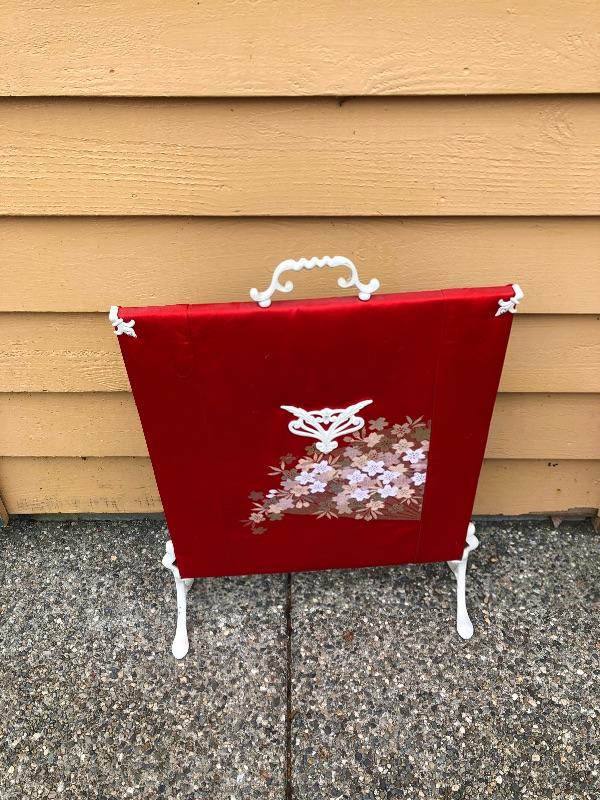 300:  Chair and Trellis Asian Ceramic Statues with Antique Asian Screen