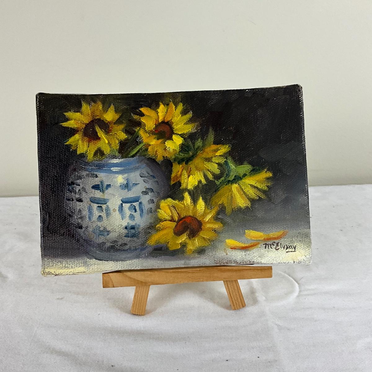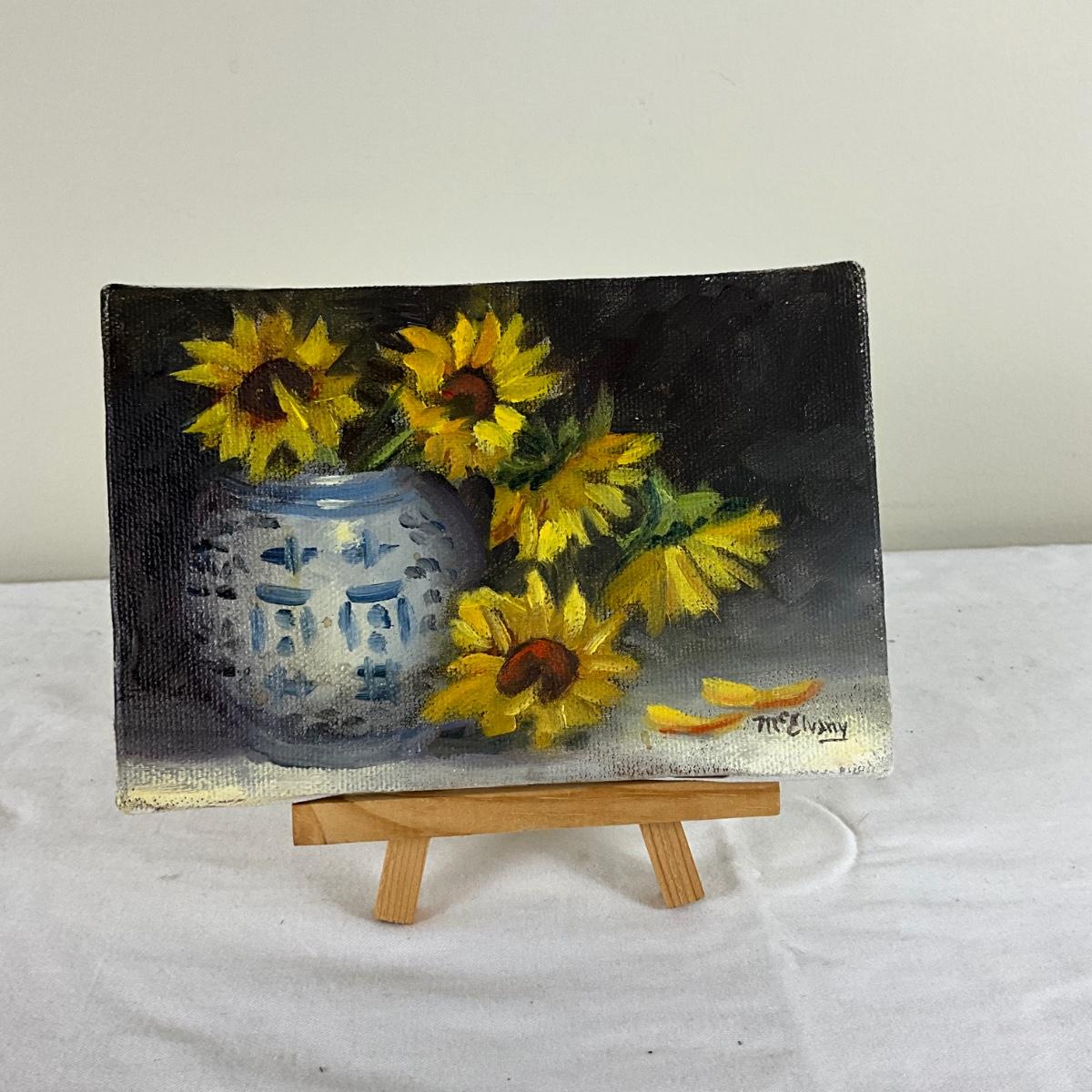 233 Original Mini Oil Painting of Sunflowers by June McElvany Coonce