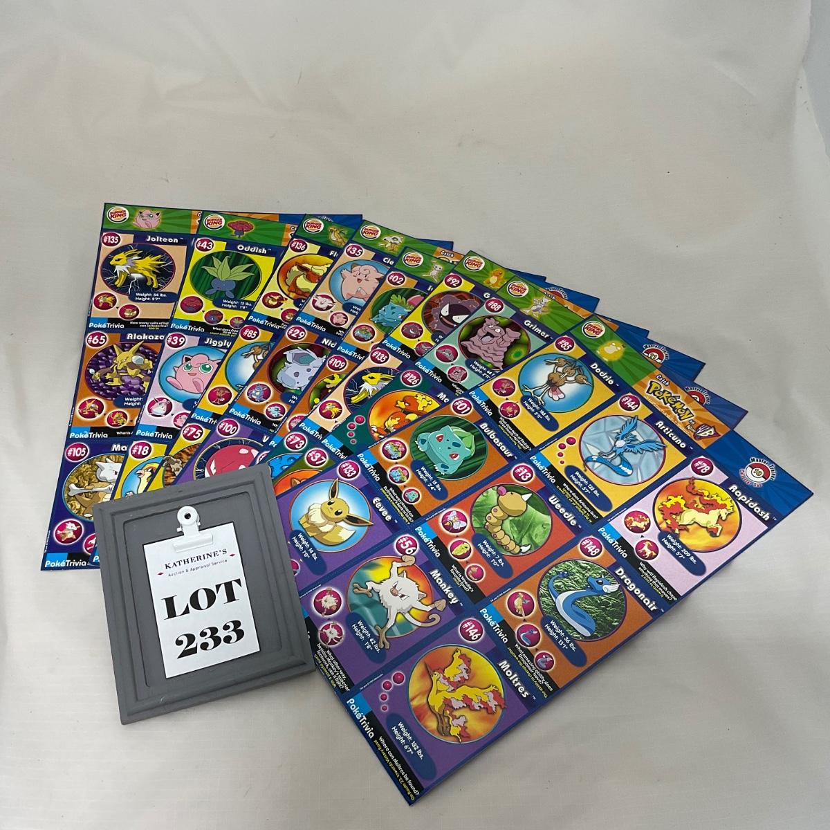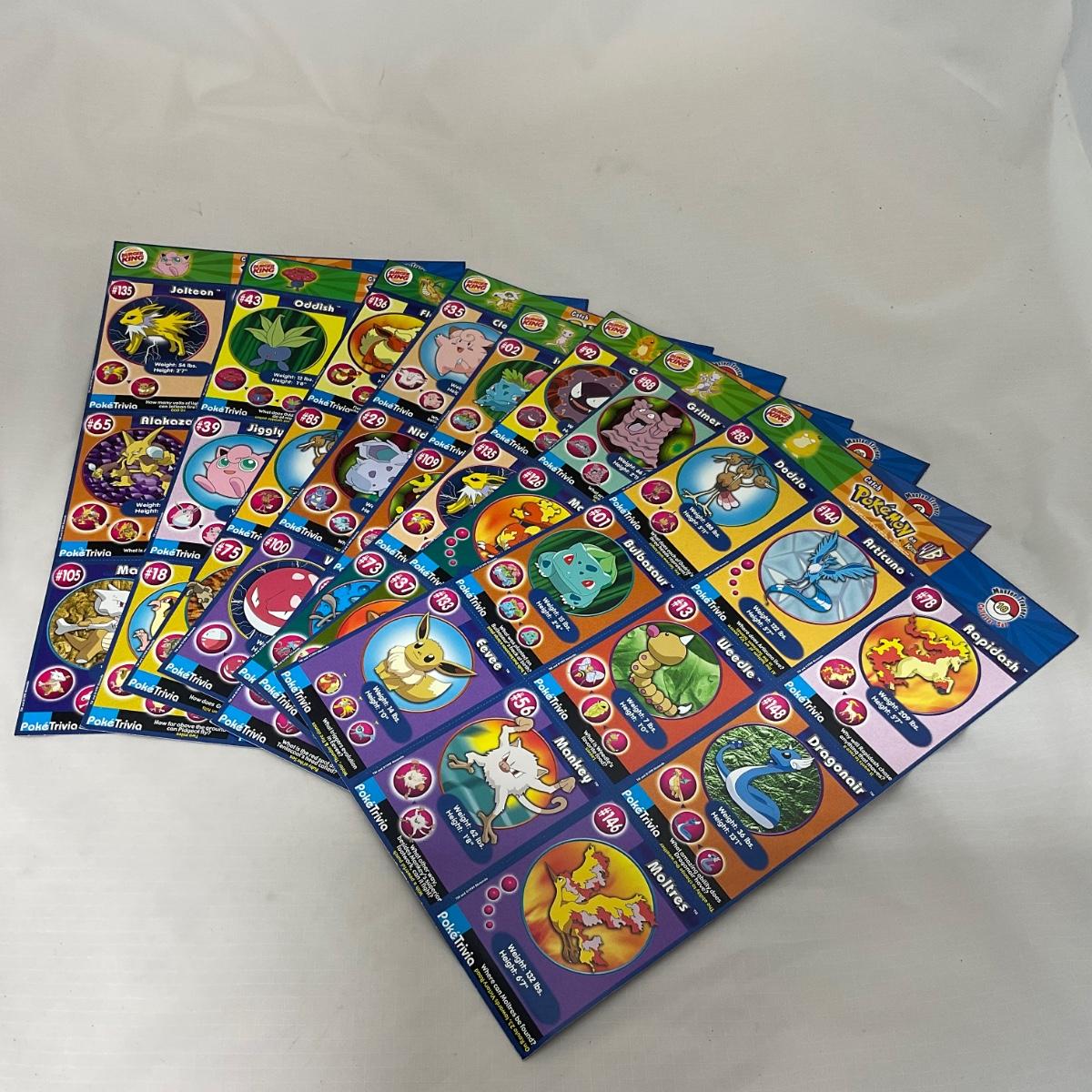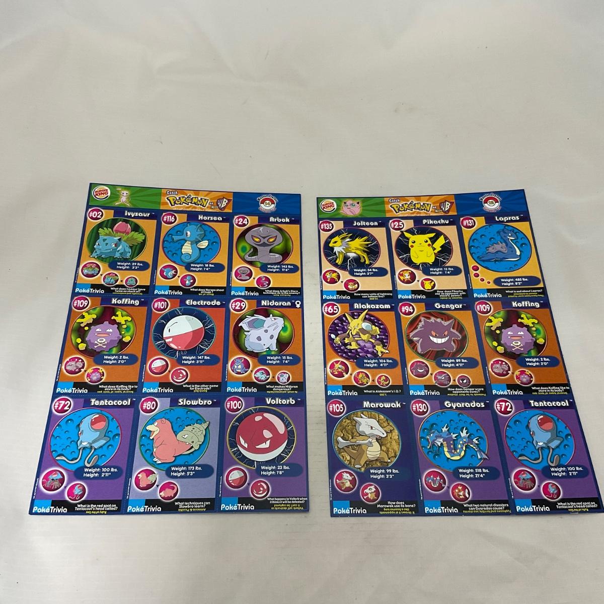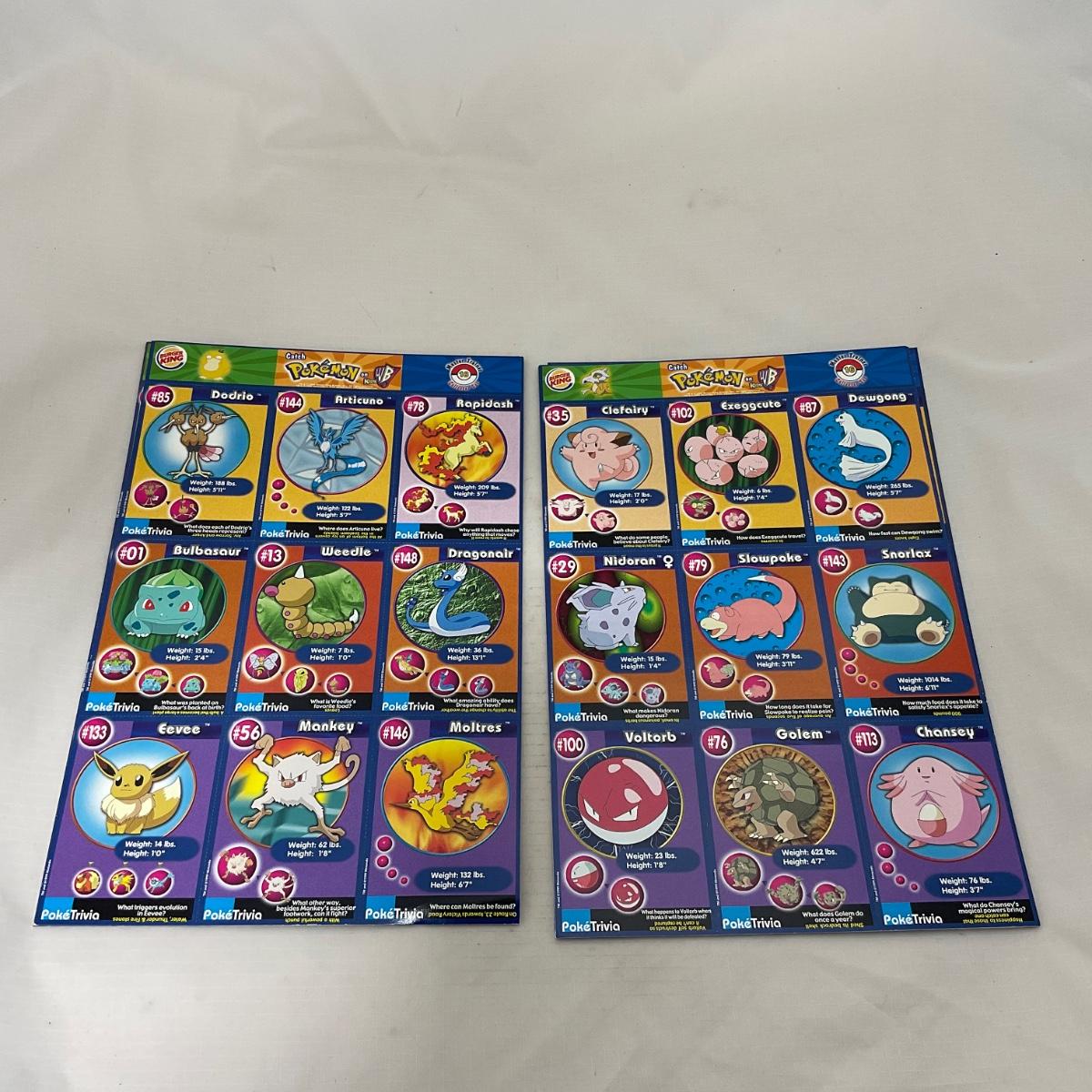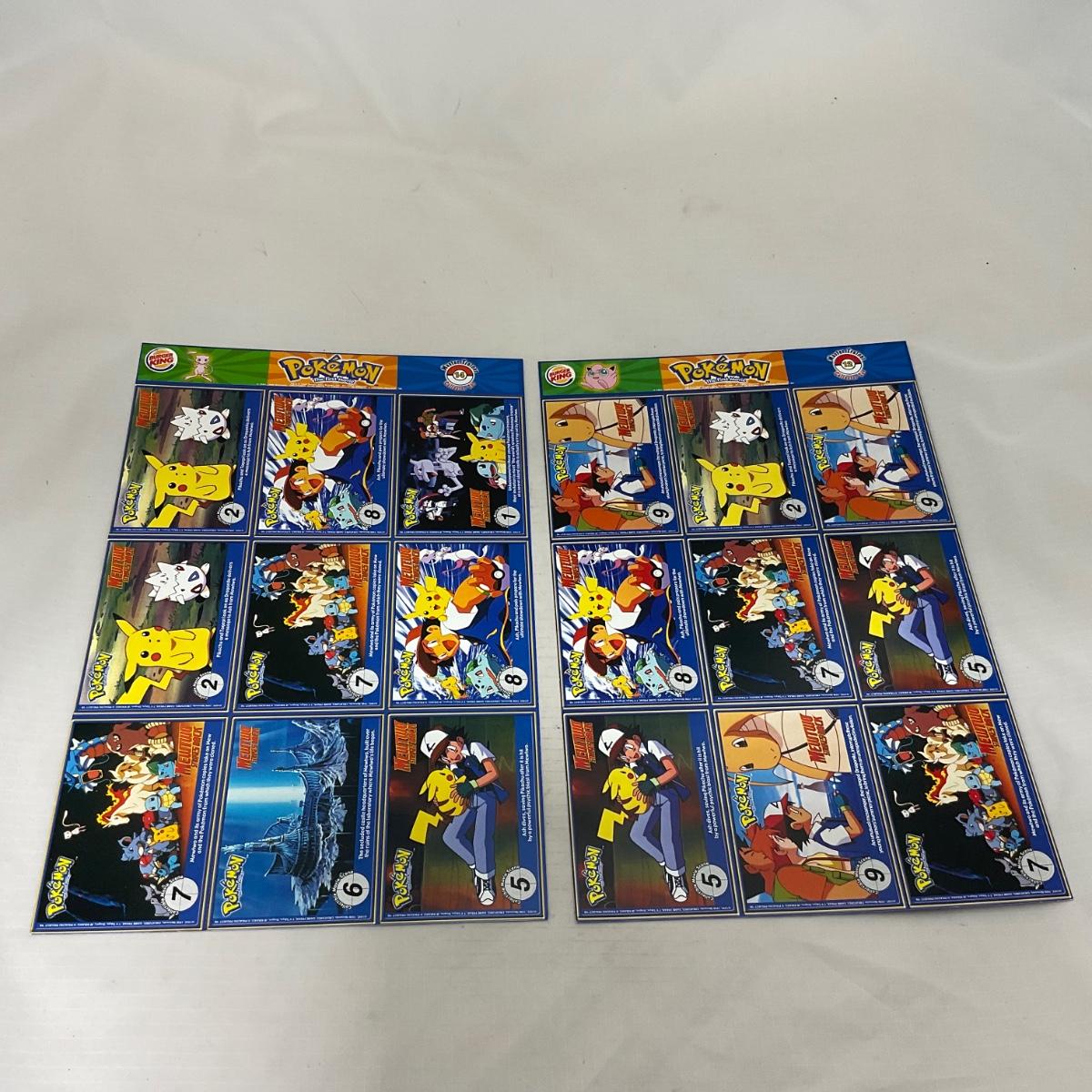 Eight Uncut Burger King Sheets of Pokémon Cards. In very good condition. Please see photos for details and condition. ::: Shipping is available on this lot. If you require shipping you must let us know at the close of the auction. We will coordinate with you after the item has been won. Shipping fees will include insurance up to or exceeding the value of all items being mailed. If you have any questions regarding this lot please contact the auctioneer either via this website, by direct email or by phone. PICK UP TIMES and other important information can be found in the TERMS and DESCRIPTION of the auction. Please take a look for pertinent information. Thanks!