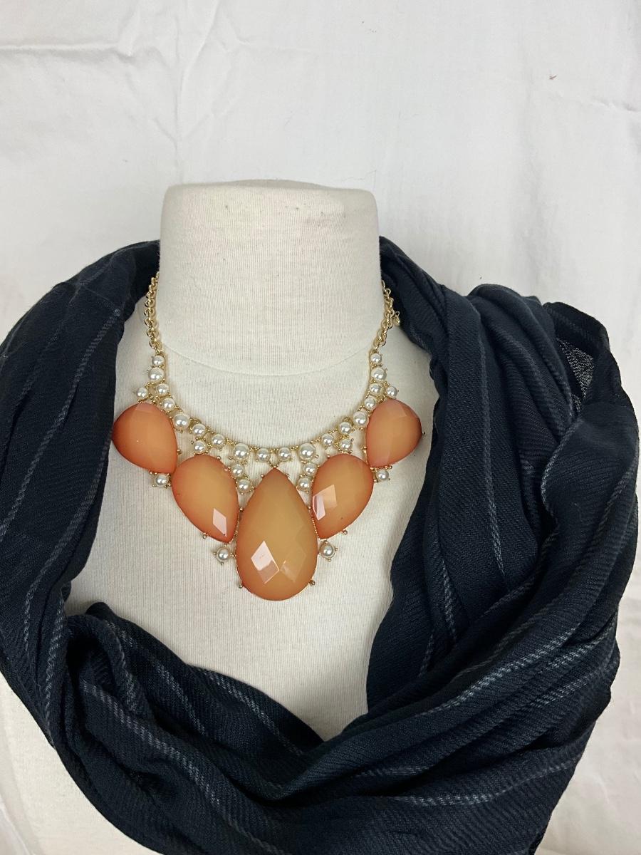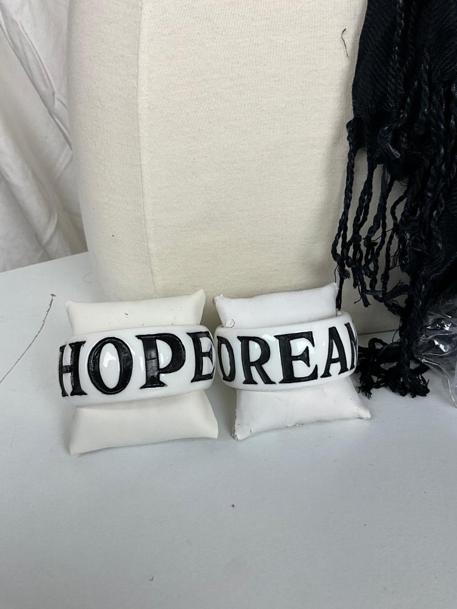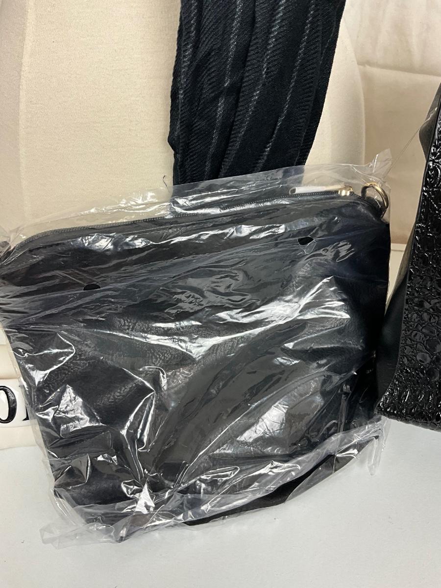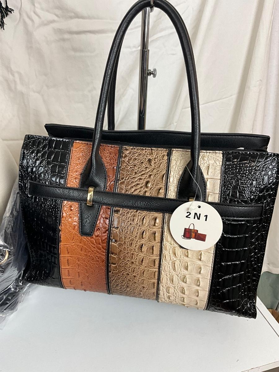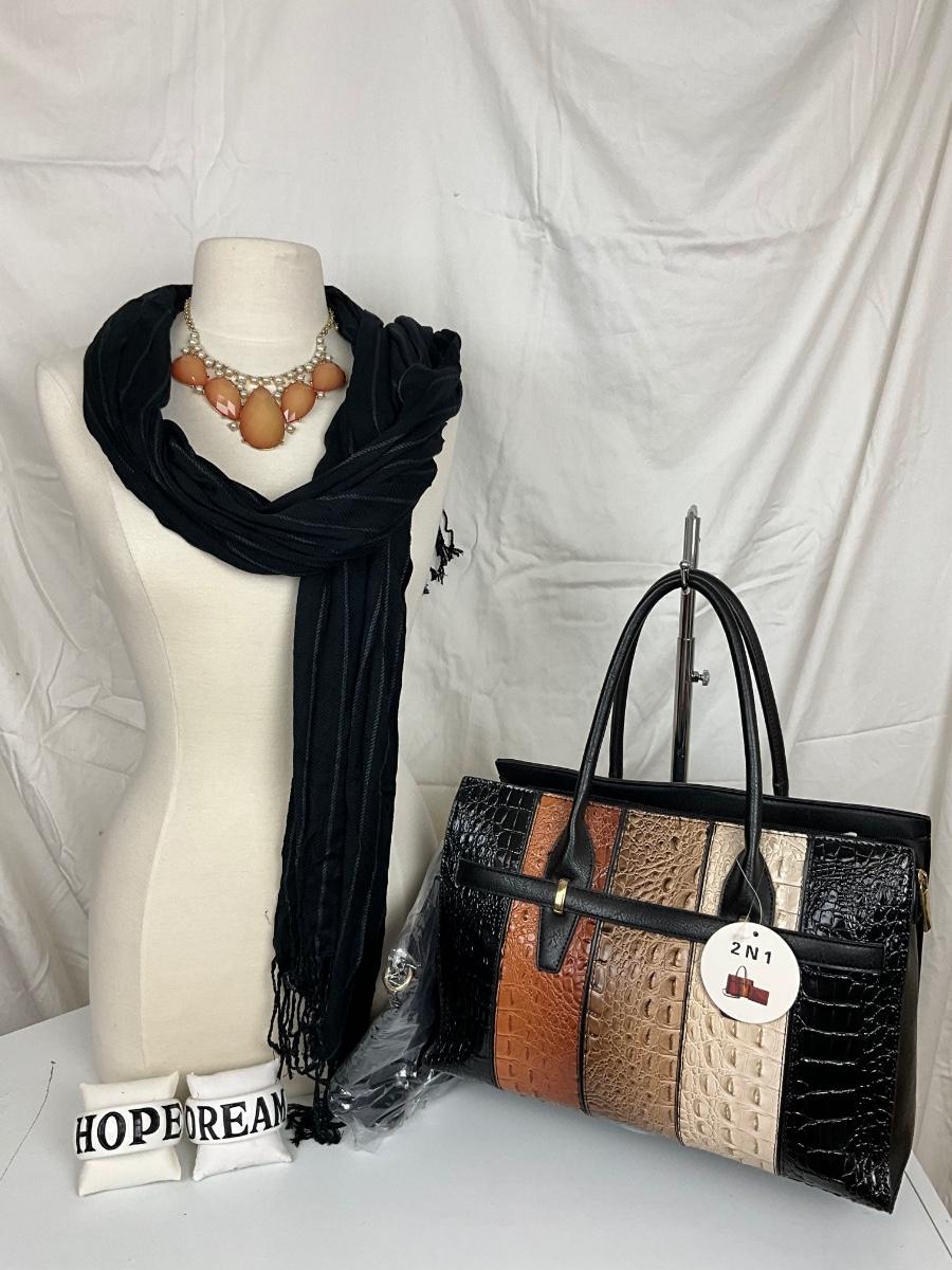 234 Alligator Style Tricolored Handbag , Statement Necklace, Black Scarf, Dream & Hope Bangle Bracelets