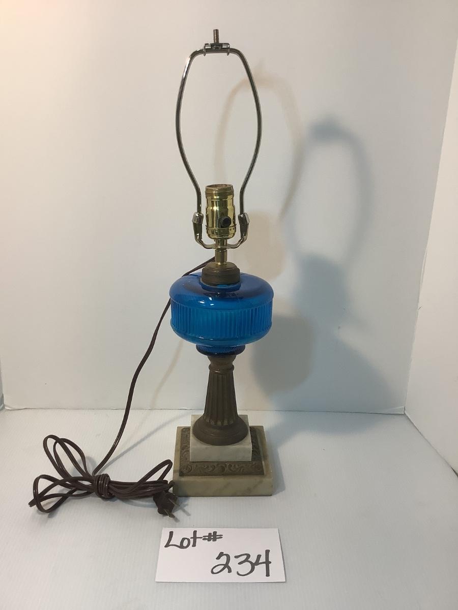 234. Antique Marble Base Oil Lamp Converted to Electric Lamp