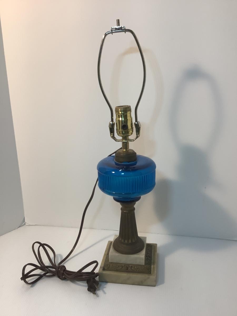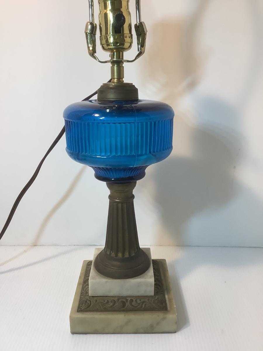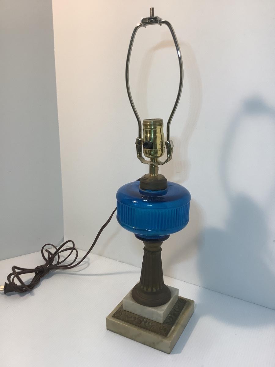 Antique Marble Base Oil Lamp Converted to Electric Lamp