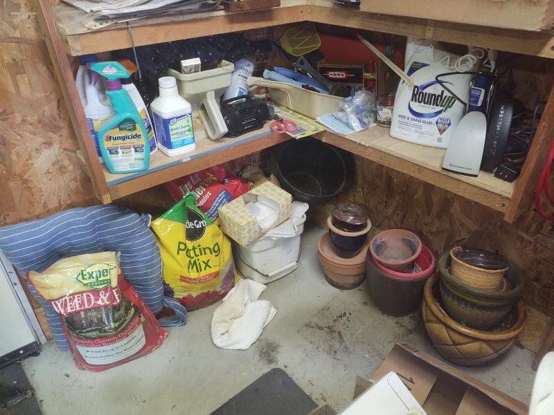 Chemicals, planting supplies, mesh fencing, bird feeders, and other items.