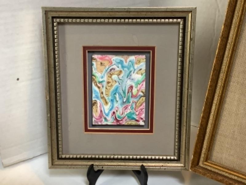 2340 Framed Enamel Art L. Emig Signed Lion Art Framed Watercolor Portrait Framed Painted Tile