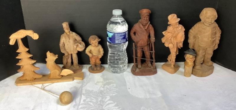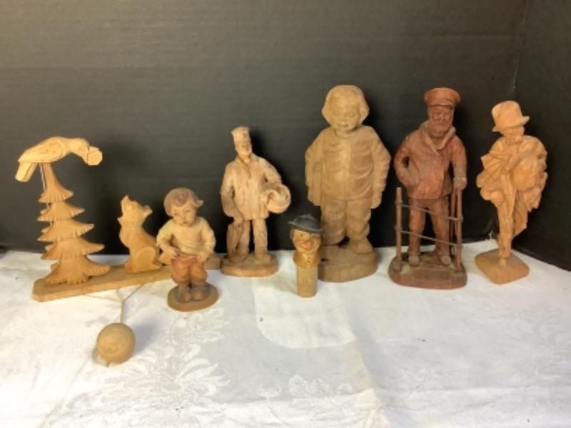 Lot of assorted vintage hand carved wood figures. Please see photos for any damage or wear.