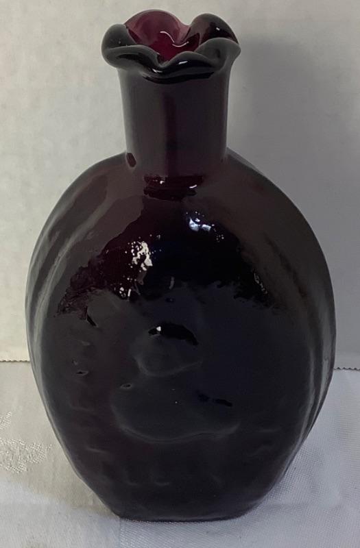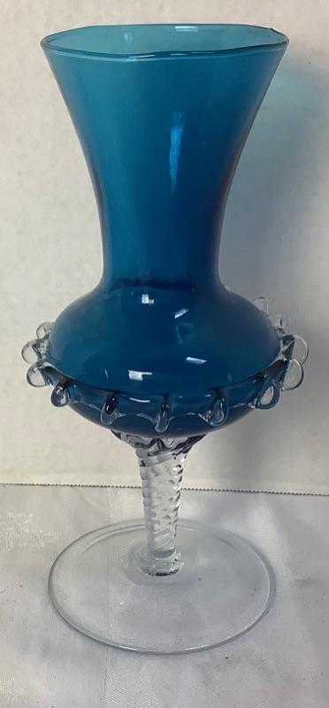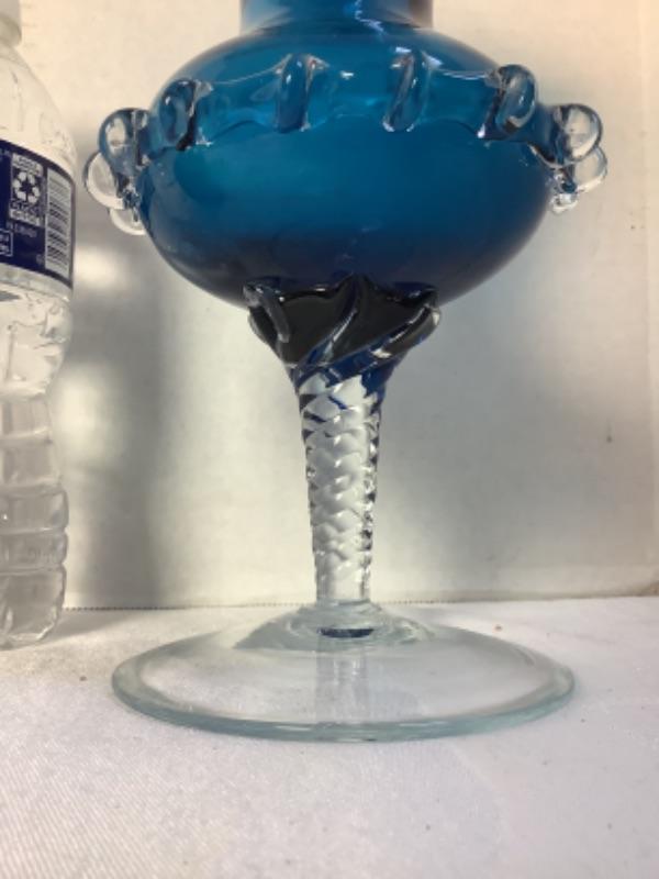 2344 Vintage Blue Glass Pedestal Vase Amethyst Glass Bottle Glass Flower Frog