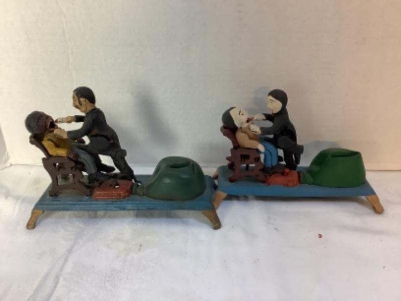 2348 Two Cast Iron Reproduction Toy Dentist Banks with Dentistry An Illustrated History Book