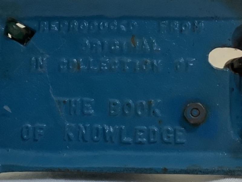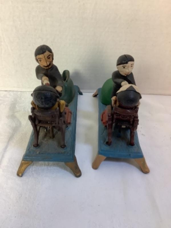 Two working cast iron reproduction toy banks, one is Made In Taiwan and one has Reproduction From Original In Collection Of The Book Of Knowledge.One is 9-1/2” long and 6-1/2” tall and the other is 8-1/2” long and 6” tall. Also included is Dentistry An Illustrated History book By Malvin E. Ring DDS