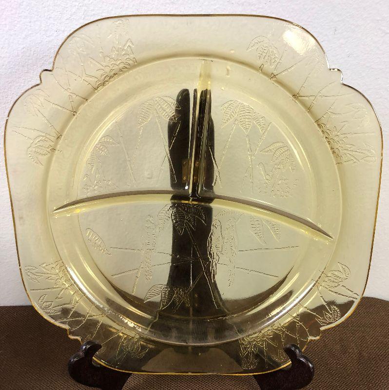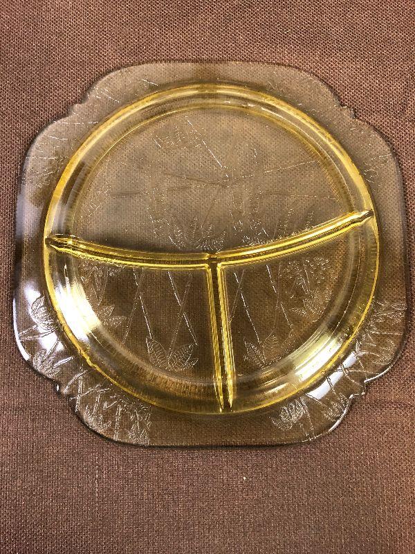 #235 Amber Depression Glass "Sylvan" Dived Plate