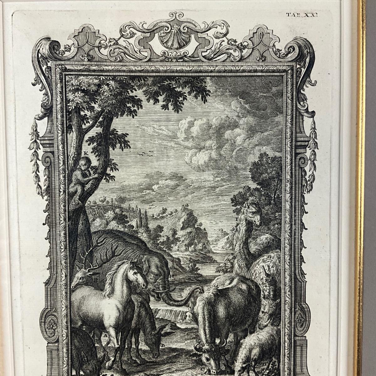 139 Antique Etching Of Horse, Elephant, Cow And Sheep