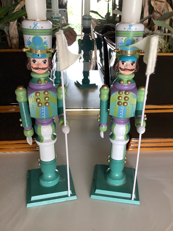 Artificial Lavender Plants and Lavender Nutcracker Candle Holders Flowers Measure 39” Tall