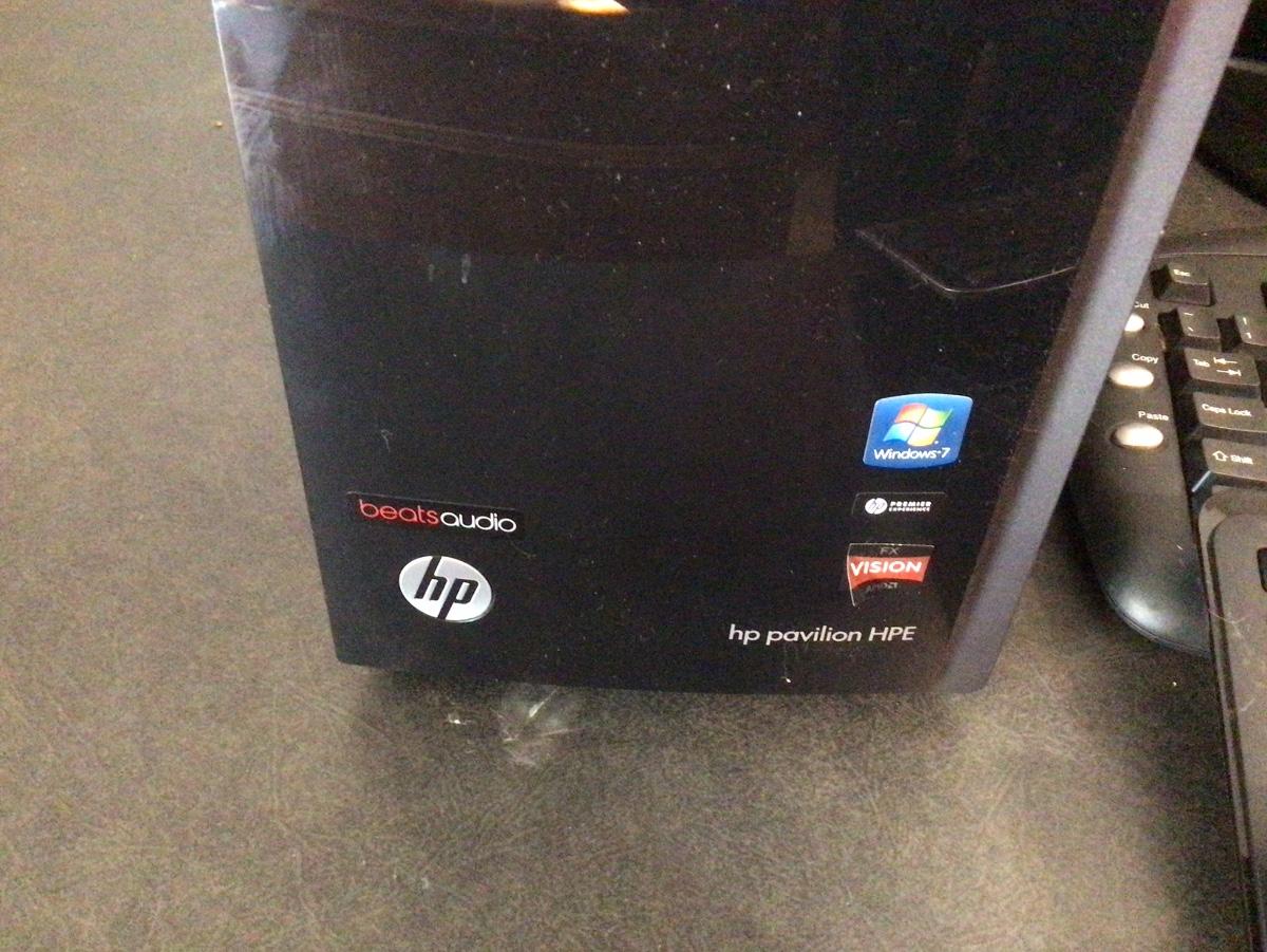 HP Pavilion HPE computer with beats audio with monitor and all cords. There are 4 keyboards, mouse and more. Computer has been restored to factory settings.