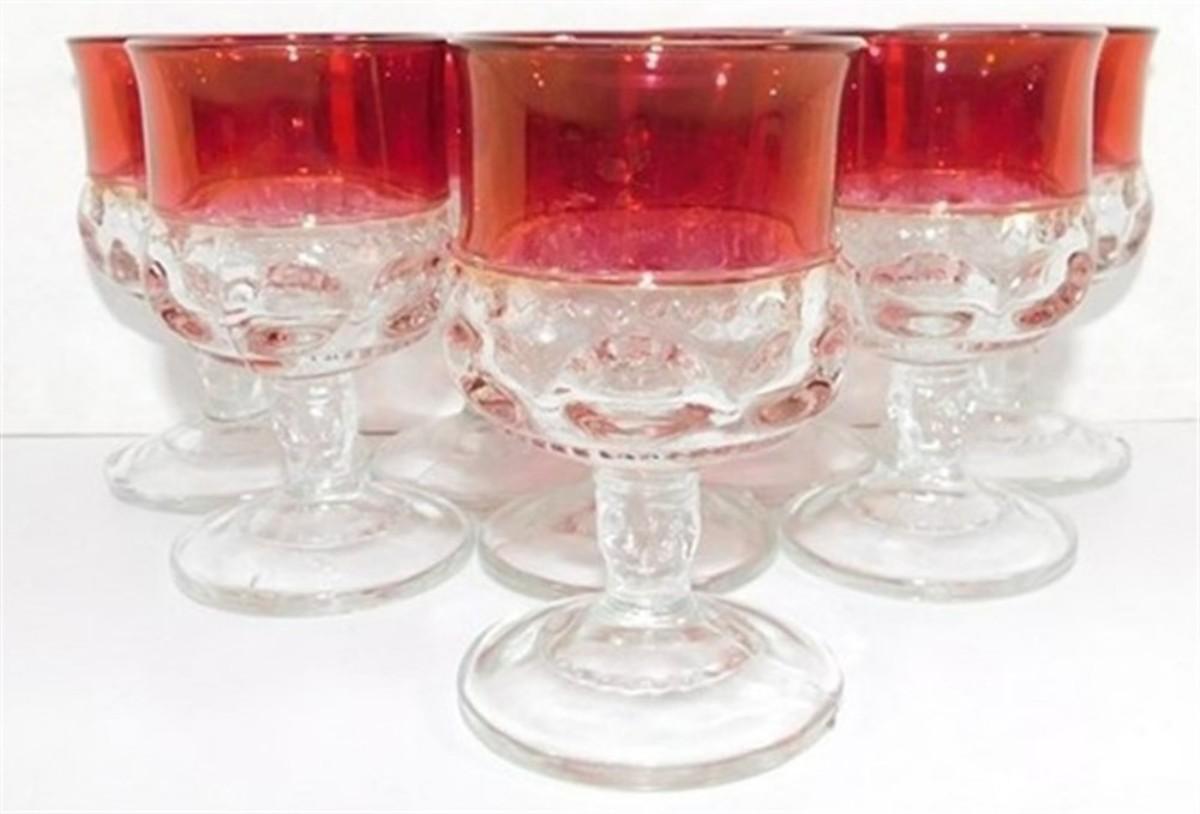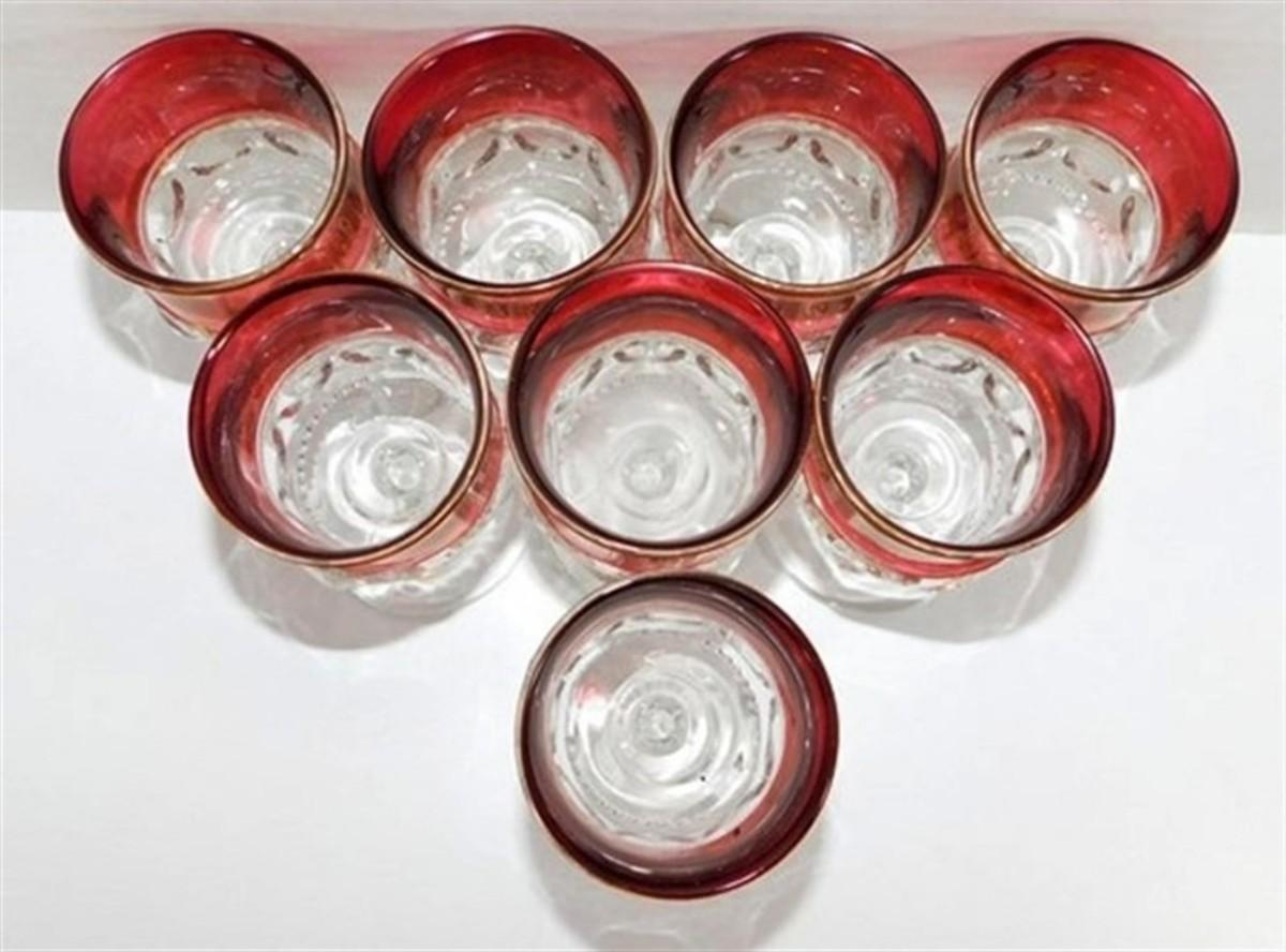 235 Lot of 8 Kings Crown Ruby Red Flash Glasses 4 1/2 x 2