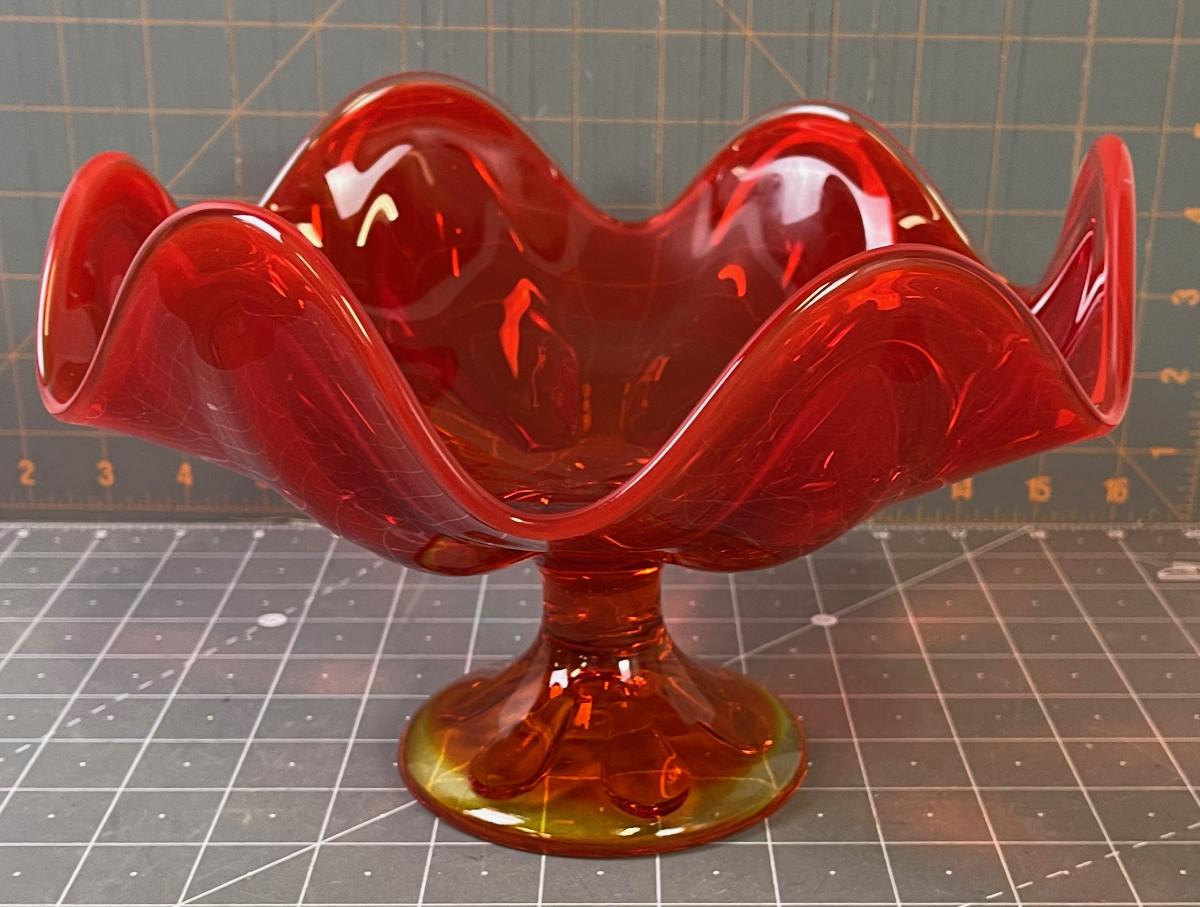#235 Orange Footed Glass MCM Bowl