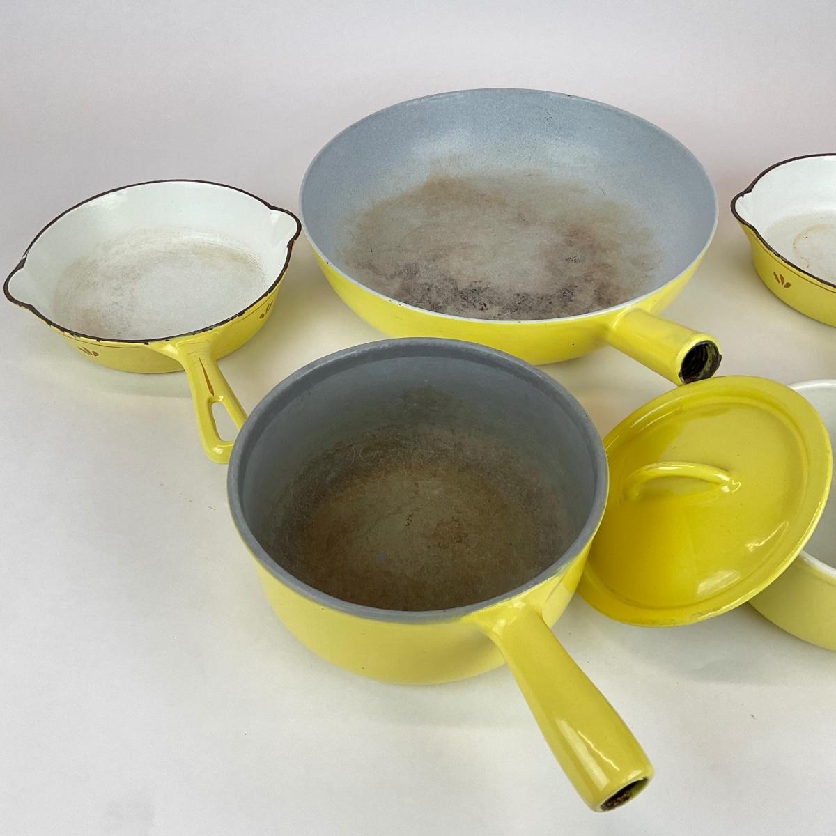235 Set of Descoware Yellow Cast Iron Enamel Pans