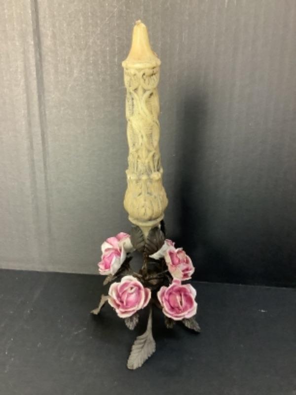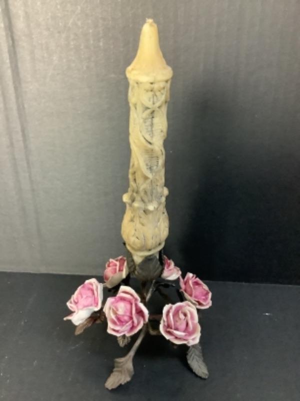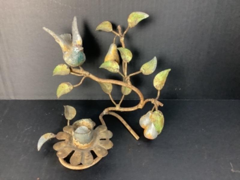 2352 Metal Partridge In A Pear Tree Metal and Porcelain Rose Candlestick and Decorative Eggs
