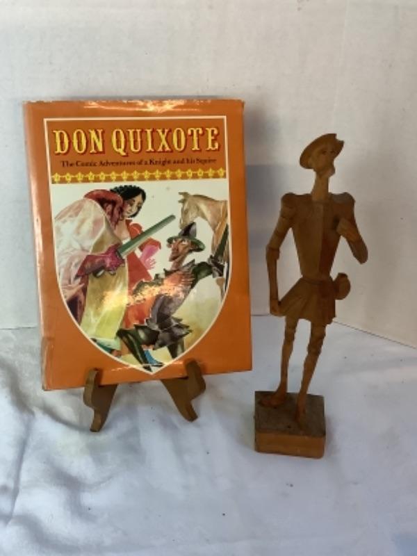 2354 Vintage Don Quixote Framed Etching By Salvador Dali Don Quixote Book and Hand Carved Figurine
