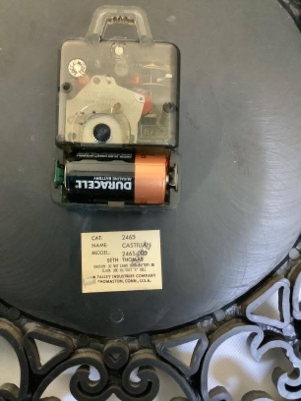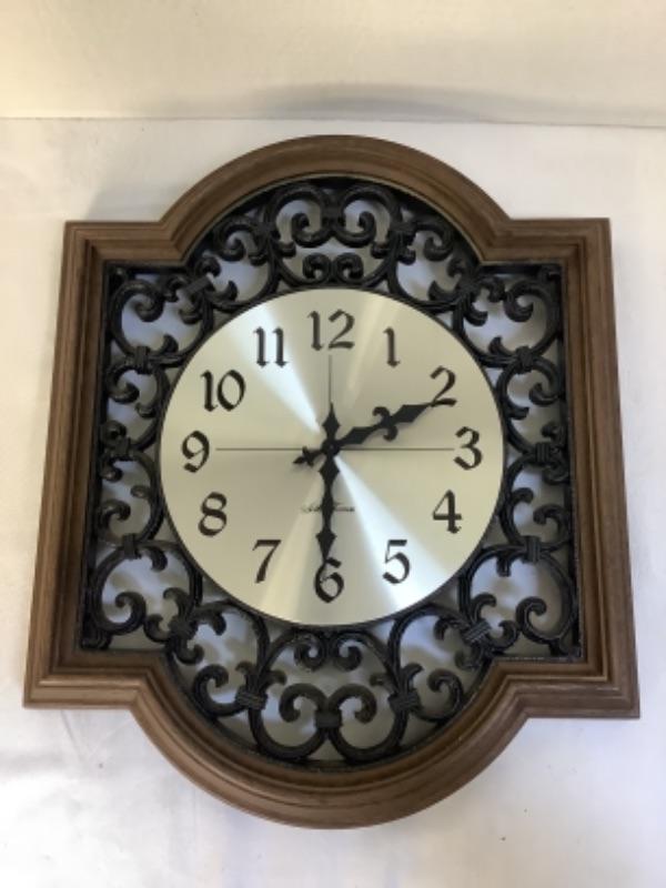 Seth Thomas Castillian wall clock model 2465-000. Clock is made of plastic and measures 18-1/2” x 15”