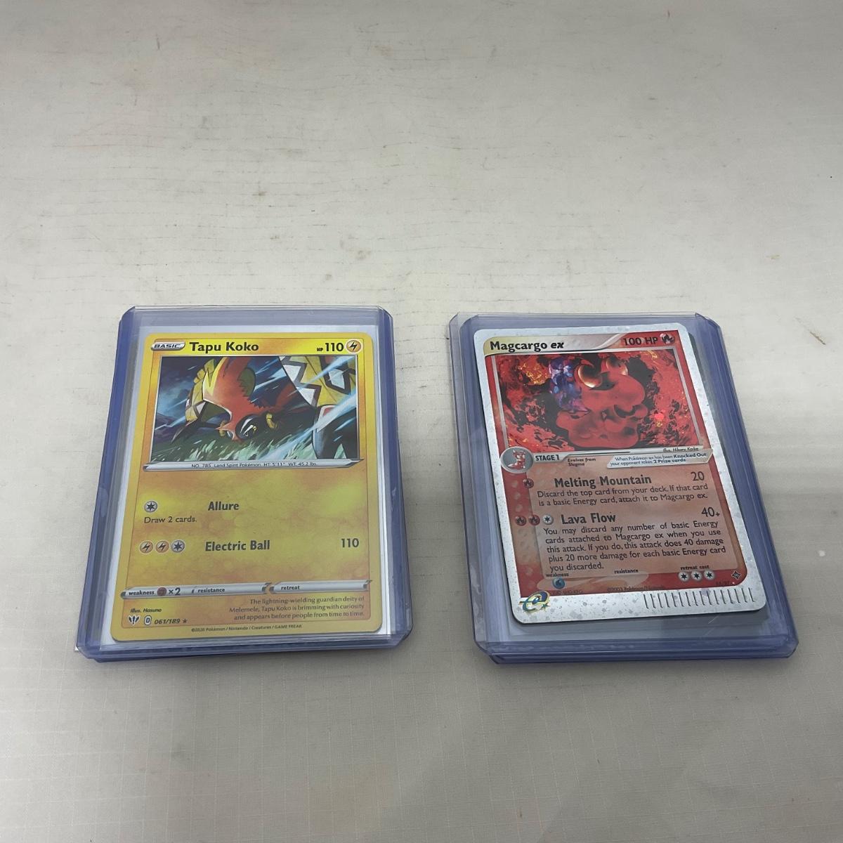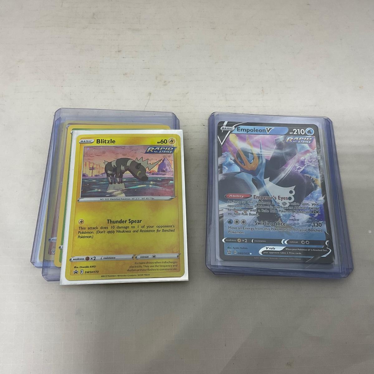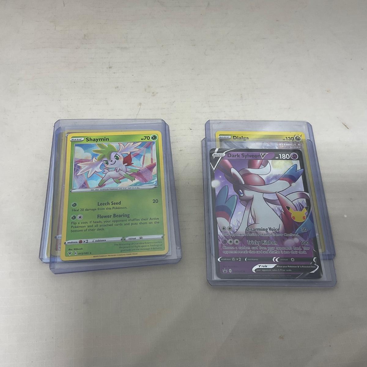 Nine Pokemon Rare and Ultra Rare Cards. With sleeves included. Please see photos for details and condition. ::: Shipping is available on this lot. If you require shipping you must let us know at the close of the auction. We will coordinate with you after the item has been won. Shipping fees will include insurance up to or exceeding the value of all items being mailed. If you have any questions regarding this lot please contact the auctioneer either via this website, by direct email or by phone. PICK UP TIMES and other important information can be found in the TERMS and DESCRIPTION of the auction. Please take a look for pertinent information. Thanks!