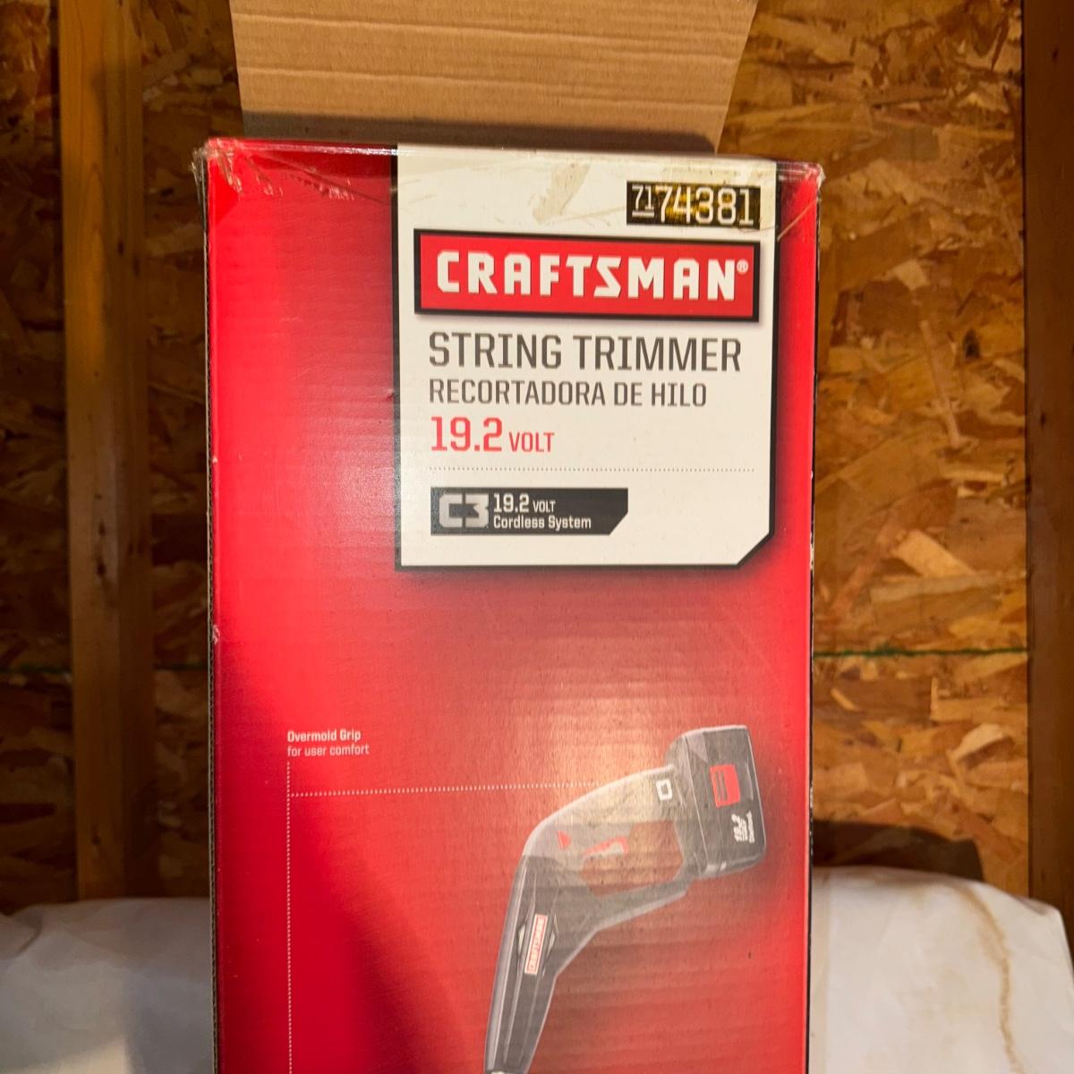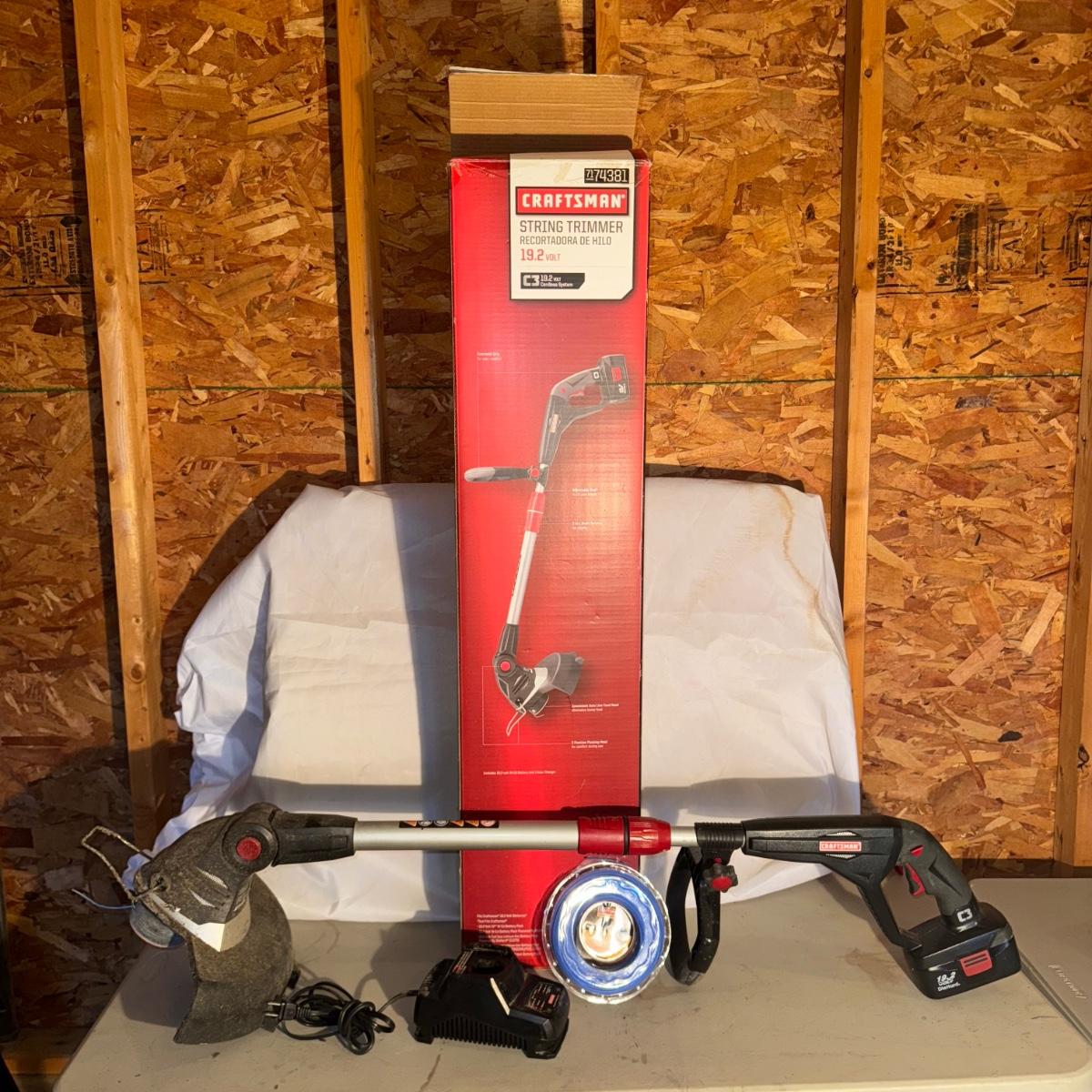 Craftsman String Trimmer Battery Powered-19.2 Volt. Lightly used tested and working well. Comes with extra weed trimming cord and plug in charger for battery.