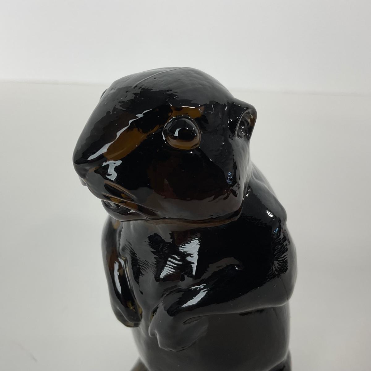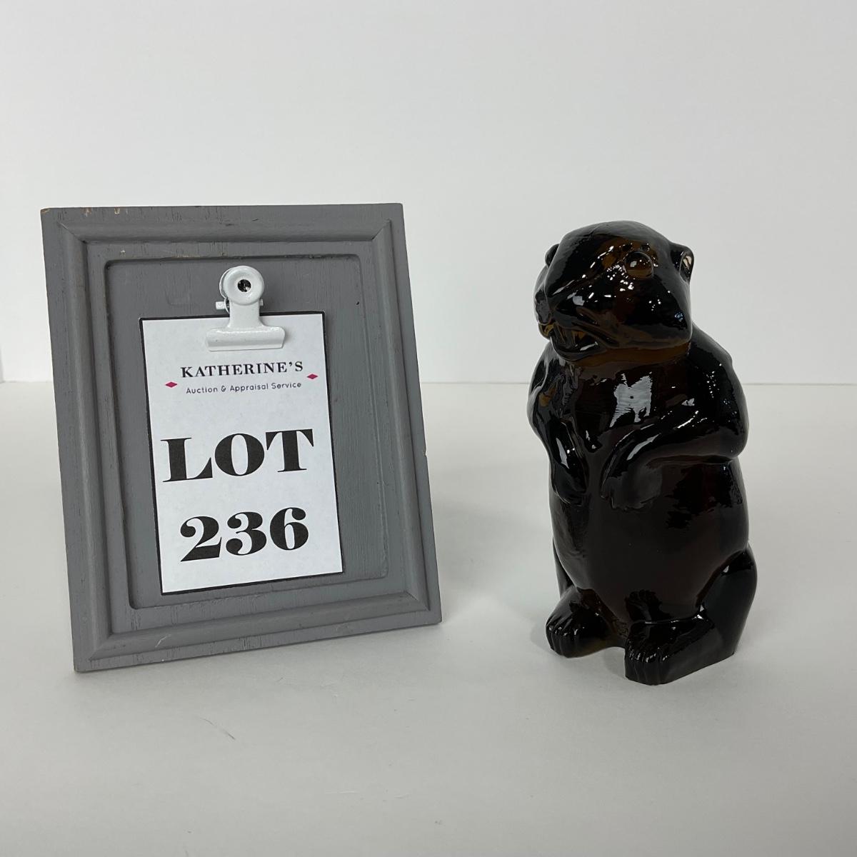 One Imperial marked dark brown woodchuck beaver. This piece has no damage, and appears to be in great shape with no visable chips, cracks, or broken pieces. 2 1/2 inches wide by 4 1/2 inches tall. Please see photos for details and condition. Any condition statement is given as a courtesy to a client, is an opinion, and should not be treated as a statement of fact. Reference to condition written, oral or within a condition report shall not be regarded as a full account of condition and may not include all defects, alterations, or restorations. Absence of a condition report does not imply a lot is flawless or lacking imperfections or damage. Katherine’s Auction & Appraisal Service shall have no responsibility for any error or omission. Returns shall not be accepted on the basis of condition. ::: Shipping is available on this lot. If you require shipping you must let us know at the close of the auction. We will coordinate with you after the item has been won. Shipping fees will include insurance up to or exceeding the value of all items being mailed. If you have any questions regarding this lot please contact the auctioneer either via this website, by direct email or by phone. PICK UP TIMES and other important information can be found in the TERMS and DESCRIPTION of the auction. Please take a look for pertinent information. Thanks!