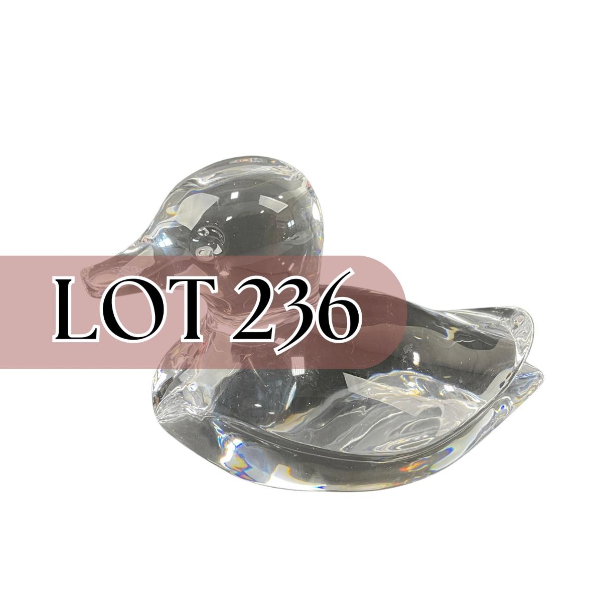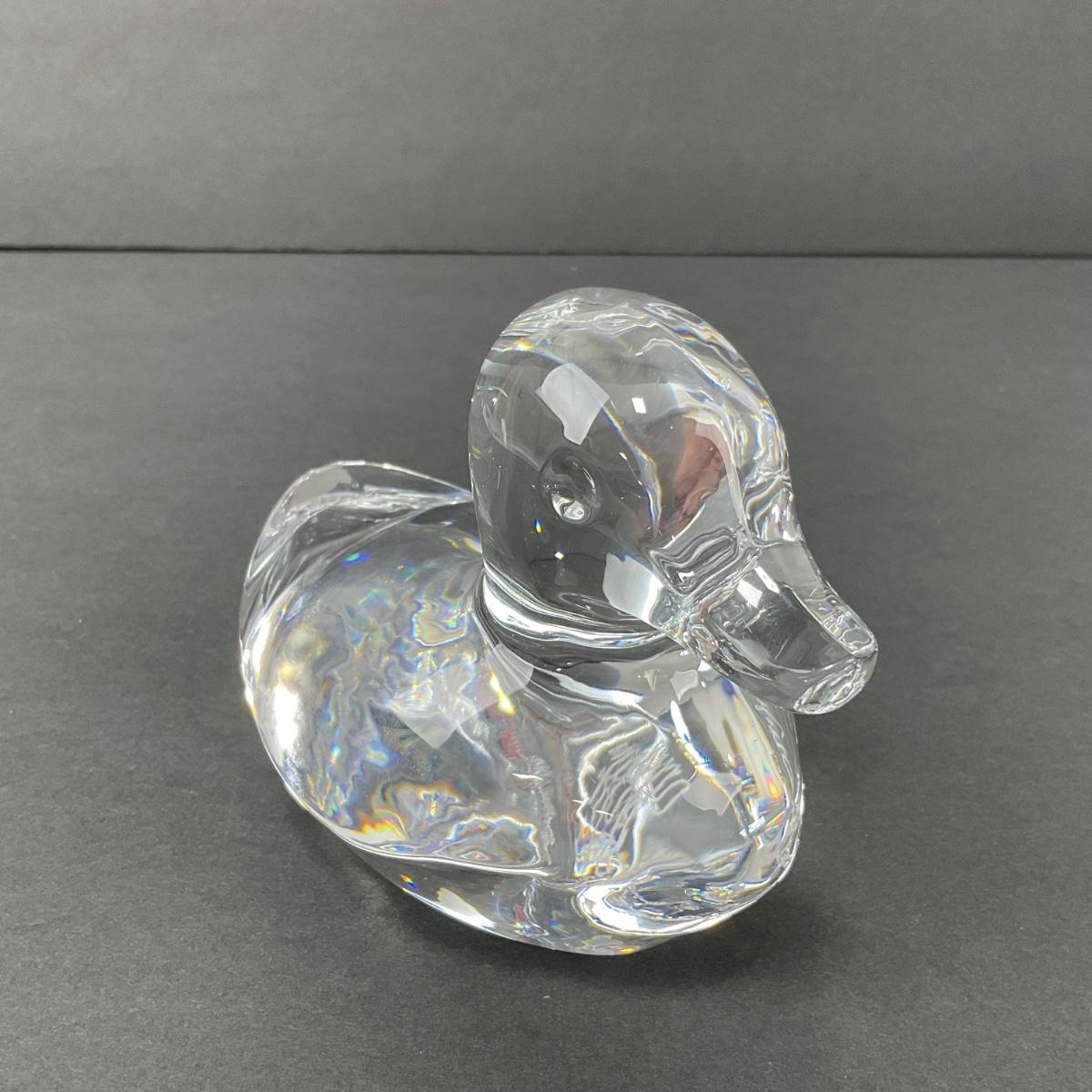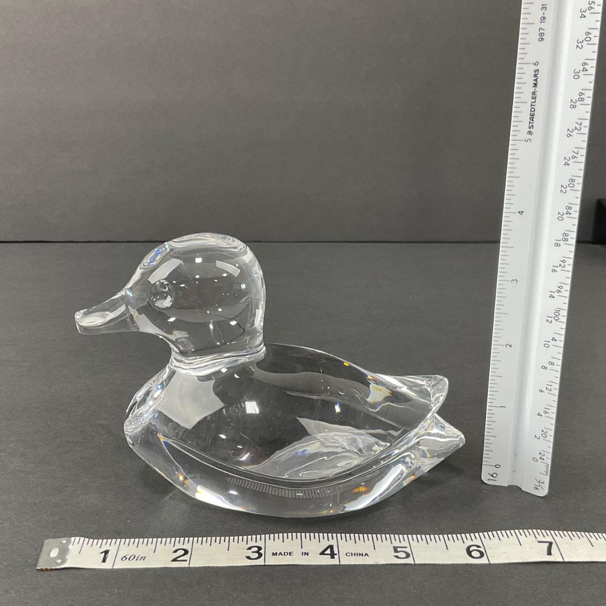 One marked Orrefors Swedish art glass crystal duck figure. This piece has no damage, and appears to be in great shape with no visable chips, cracks, or broken pieces. Please see photos for details and condition. Any condition statement is given as a courtesy to a client, is an opinion, and should not be treated as a statement of fact. Reference to condition written, oral or within a condition report shall not be regarded as a full account of condition and may not include all defects, alterations, or restorations. Absence of a condition report does not imply a lot is flawless or lacking imperfections or damage. Katherine’s Auction & Appraisal Service shall have no responsibility for any error or omission. Returns shall not be accepted on the basis of condition. ::: Shipping is available on this lot. If you require shipping you must let us know at the close of the auction. We will coordinate with you after the item has been won. Shipping fees will include insurance up to or exceeding the value of all items being mailed. If you have any questions regarding this lot please contact the auctioneer either via this website, by direct email or by phone. PICK UP TIMES and other important information can be found in the TERMS and DESCRIPTION of the auction. Please take a look for pertinent information. Thanks!
