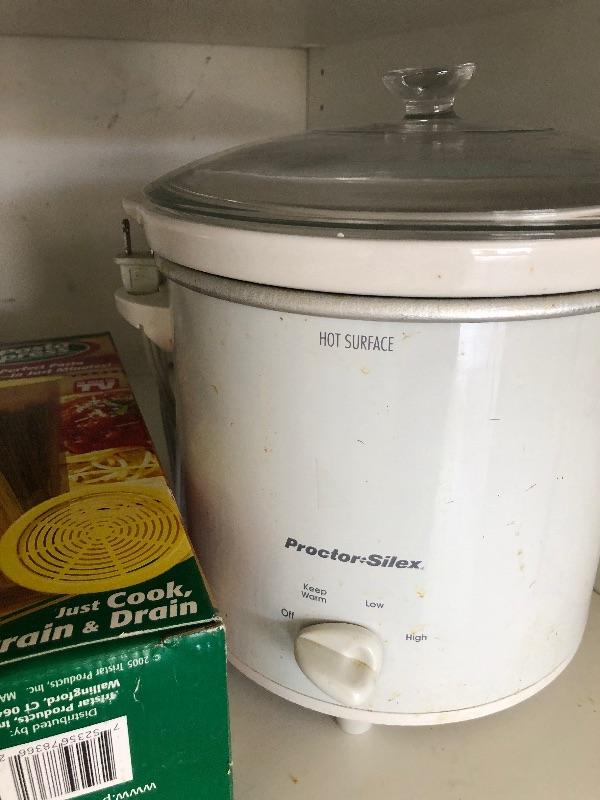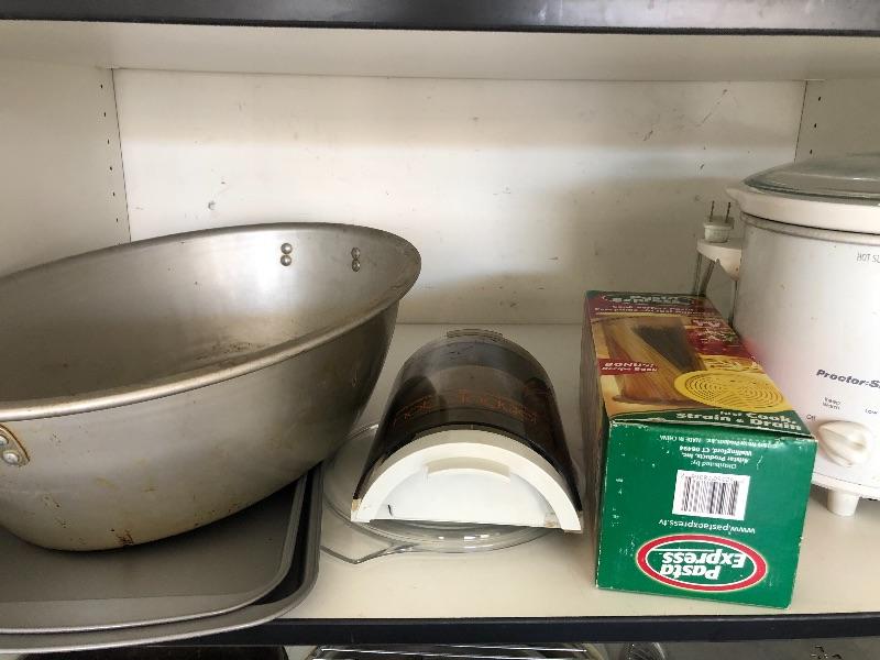 Used condition, bundle includes roasting pan, baking sheets, slow cooker and two other appliances, unsure if the electric items work. This is an ONSITE Auction all items will need to be picked up on location. Please see auction description for pick up procedures. Shipping is available on smaller items.