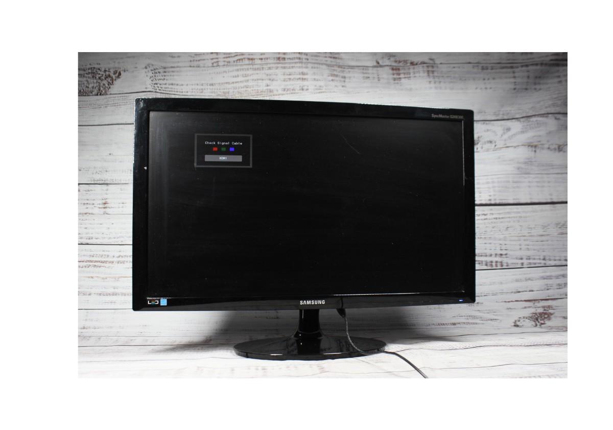 Samsung Syncmaster S24B300 HD LED Computer Monitor, there is no significant damage to the monitor or screen and is in good condition. Has been plugged in and tested, but has not been tested with a computer monitor. Check pictures for more details and for sizing.