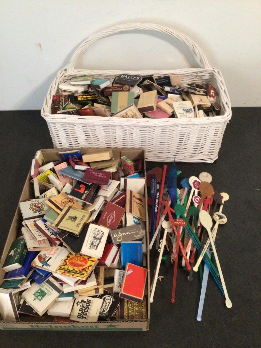 Large lot of matches and swizzle sticks from all over the United States and vacations abroad.