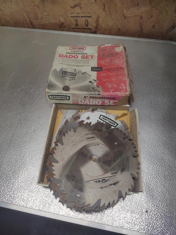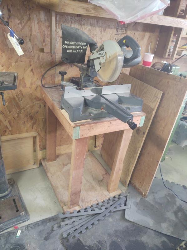 Miter saw is on a handmade stand, but could easily be bench mounted. Set of Dado blades are included. Item was tested and it powered on and ran fine at the time the pictures were taken.