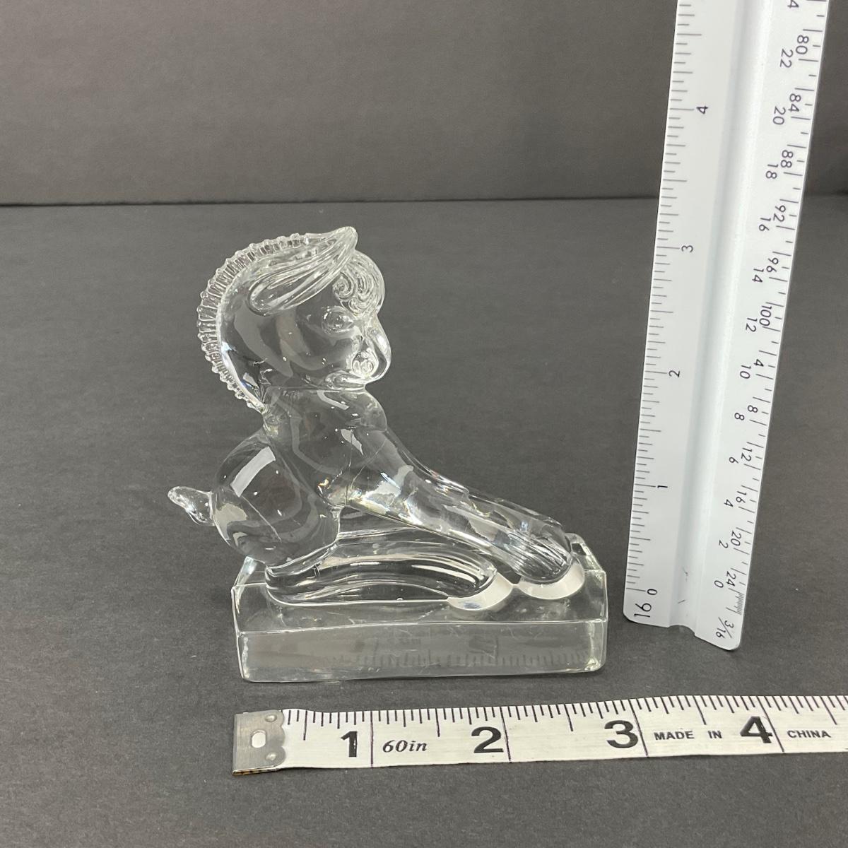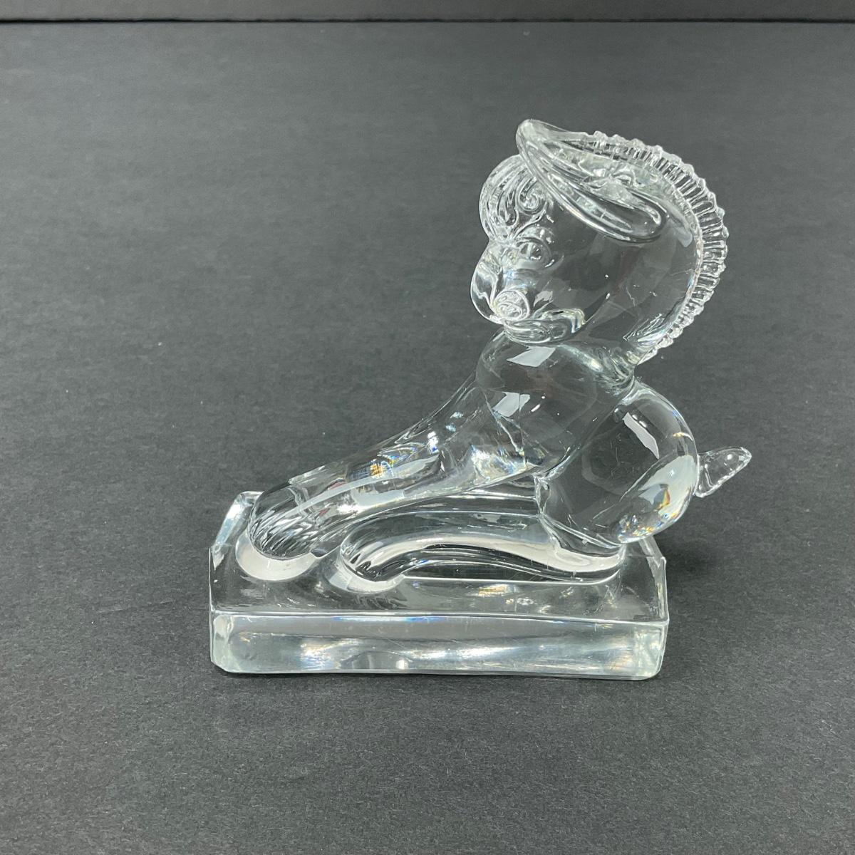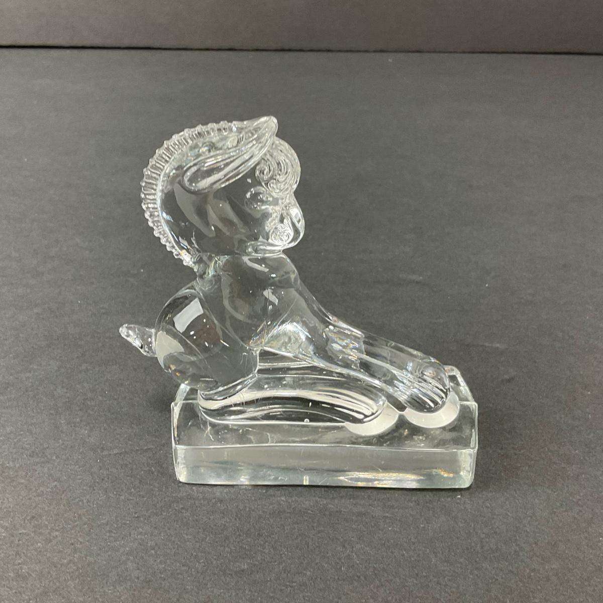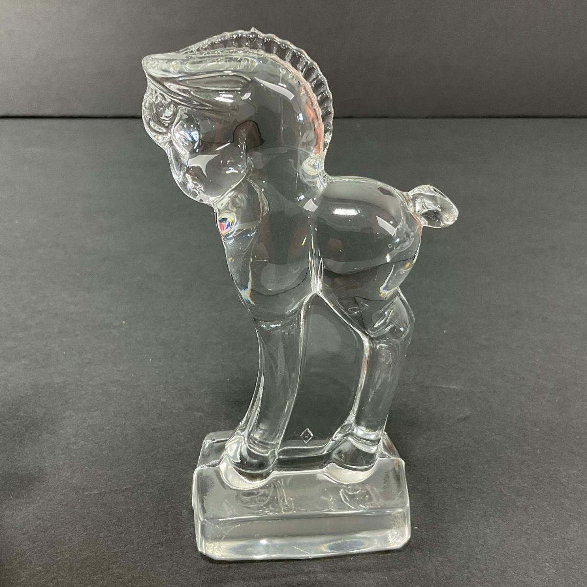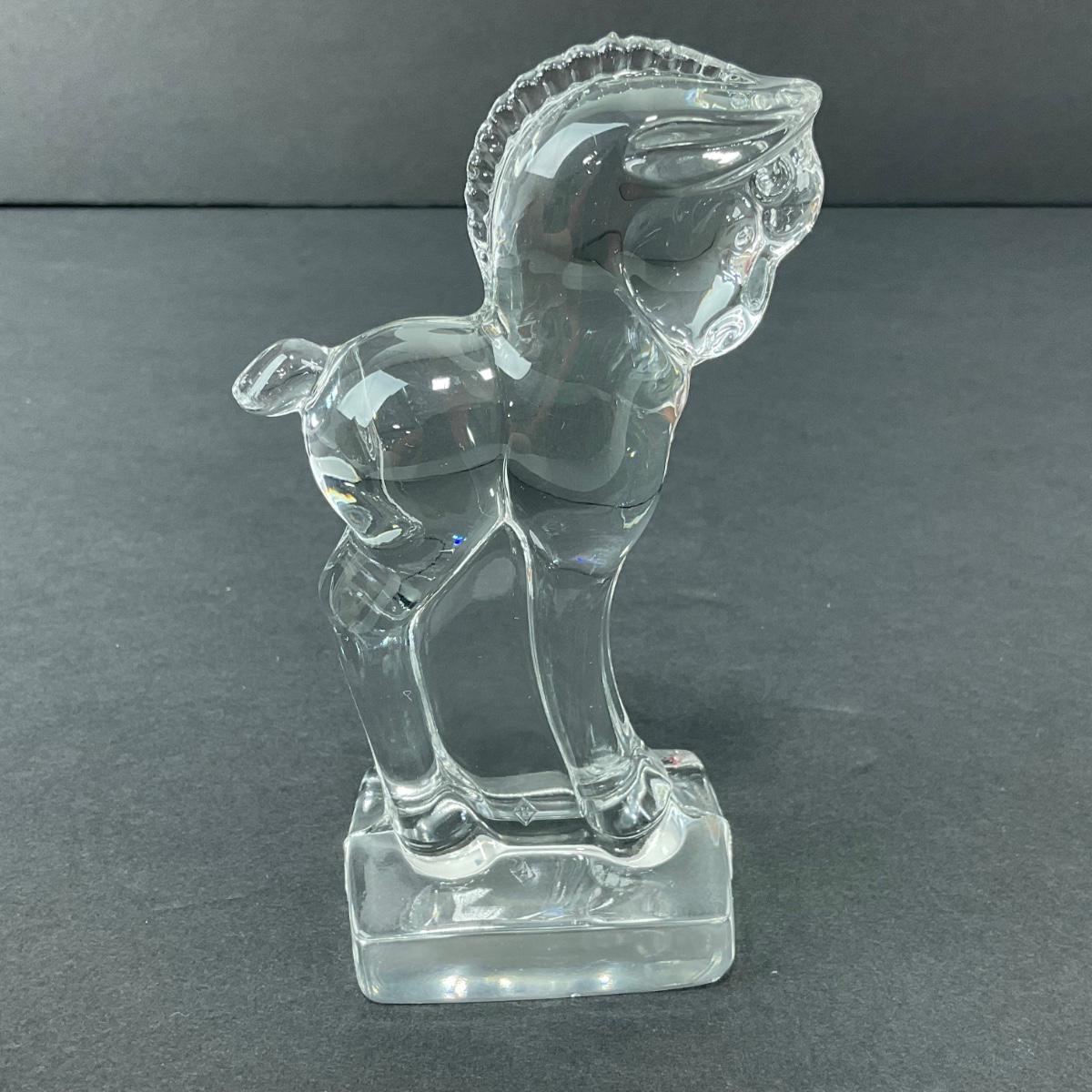 Three art glass Heisey colt figures one standing, one kicking, and one rearing. These pieces appear to have some chipping and damage on there bottom bases. Please see photos for details and condition. Any condition statement is given as a courtesy to a client, is an opinion, and should not be treated as a statement of fact. Reference to condition written, oral or within a condition report shall not be regarded as a full account of condition and may not include all defects, alterations, or restorations. Absence of a condition report does not imply a lot is flawless or lacking imperfections or damage. Katherine’s Auction & Appraisal Service shall have no responsibility for any error or omission. Returns shall not be accepted on the basis of condition. ::: Shipping is available on this lot. If you require shipping you must let us know at the close of the auction. We will coordinate with you after the item has been won. Shipping fees will include insurance up to or exceeding the value of all items being mailed. If you have any questions regarding this lot please contact the auctioneer either via this website, by direct email or by phone. PICK UP TIMES and other important information can be found in the TERMS and DESCRIPTION of the auction. Please take a look for pertinent information. Thanks!